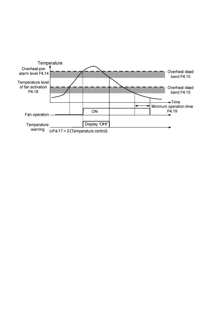 to the setting of F4.17 to set the operation method of cooling fan. The setting range