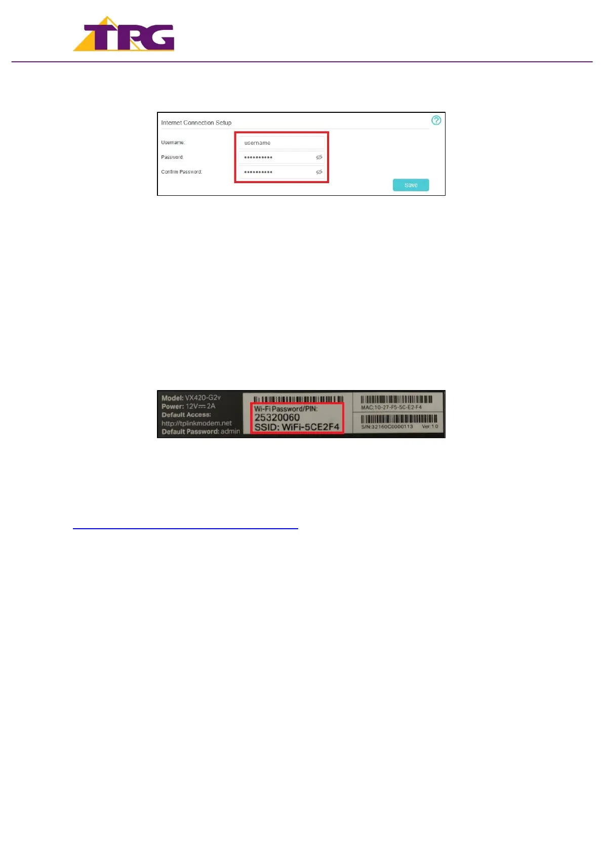 Once you receive notification that your TPG NBN service is active, your TP-Link VX420-G2v