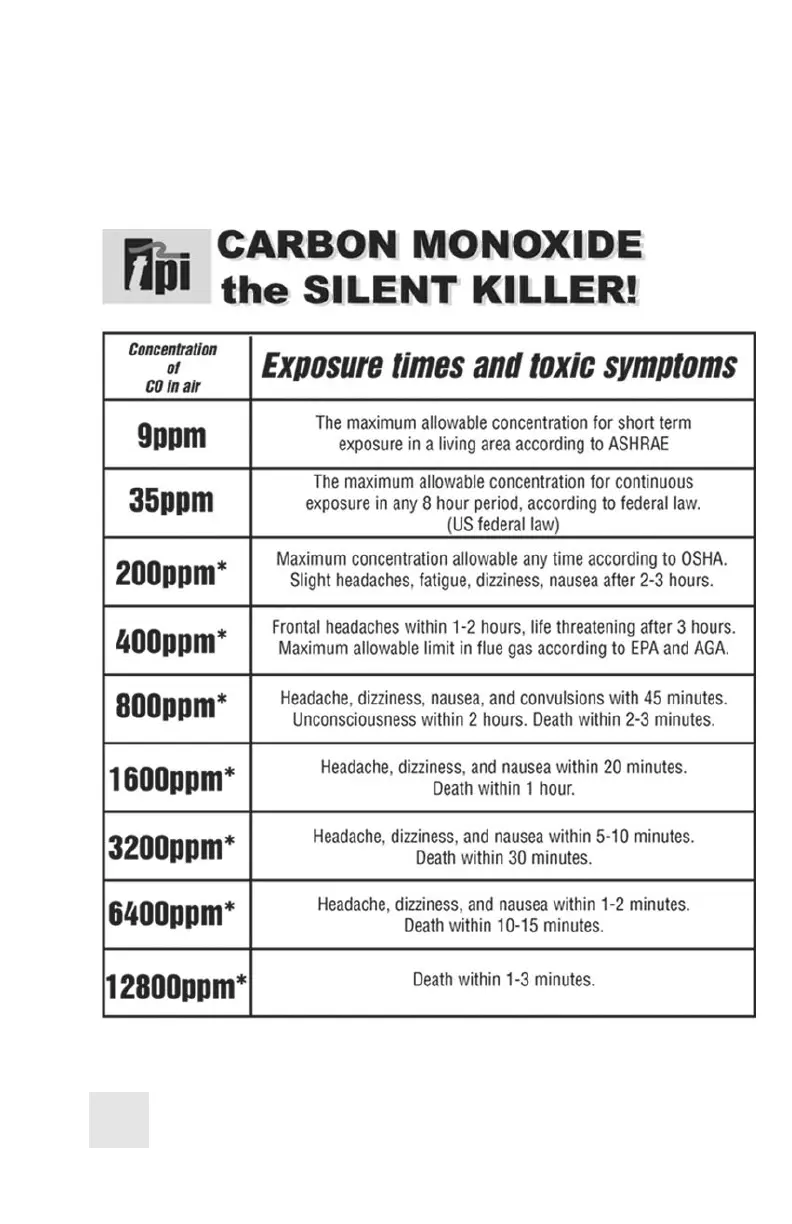 Please see the next page for a list of exposure times and symptoms.