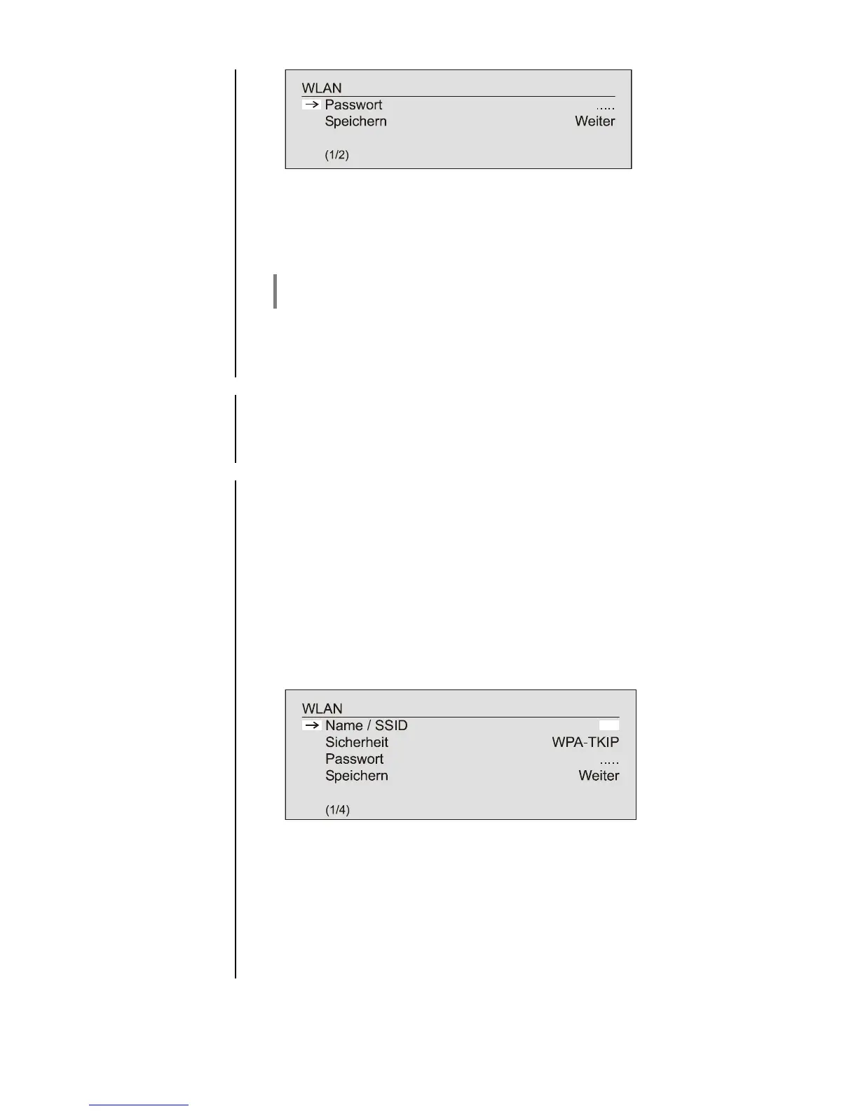 Eingaben zum WLAN Netzwerk und springt in das übergeordnete Menü,