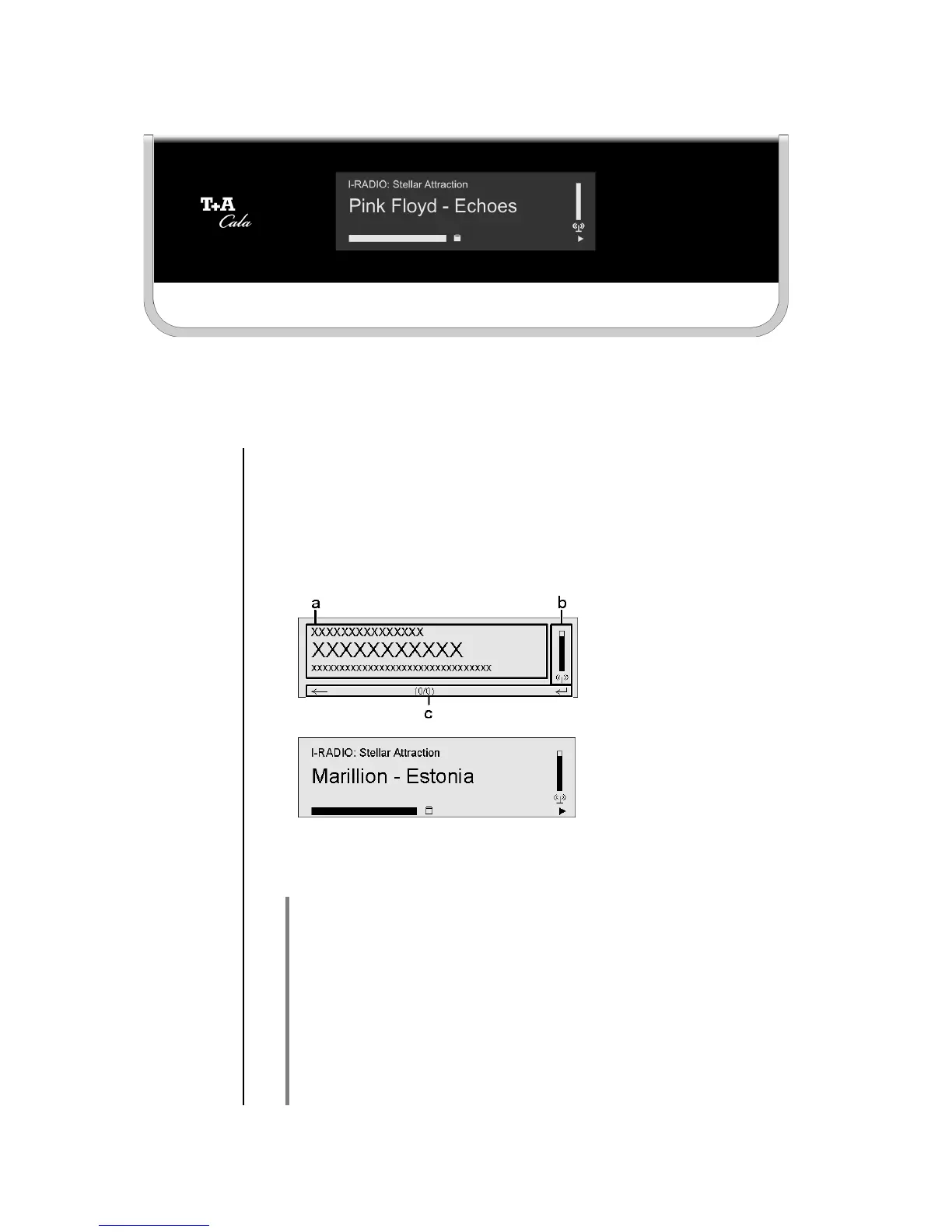 Sämtliche Informationen zum Gerätezustand, zum laufenden Titel und