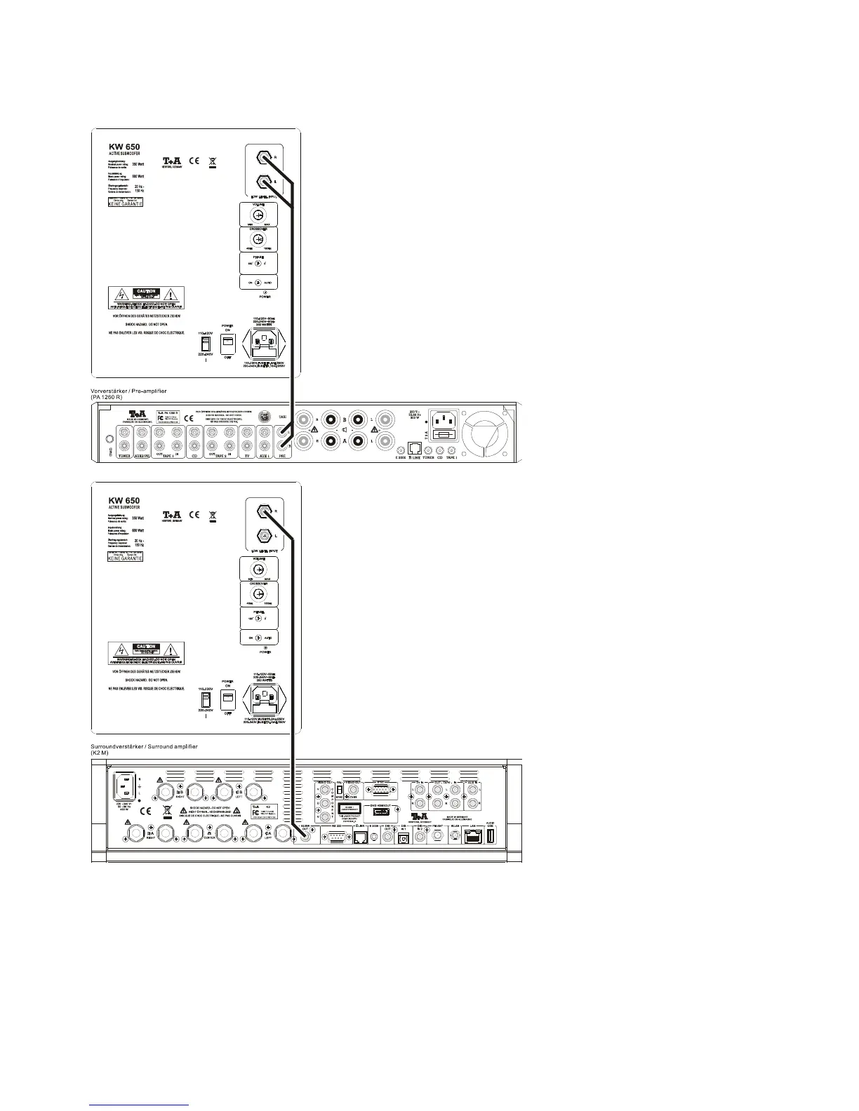 T+A KW 650 - Anschluss-Varianten; Anschluss des Subwoofers an einen Vor- oder Vollverstärker (PA 1260 R); Anschluss des Subwoofers an einen Surroundverstärker (K2 M)