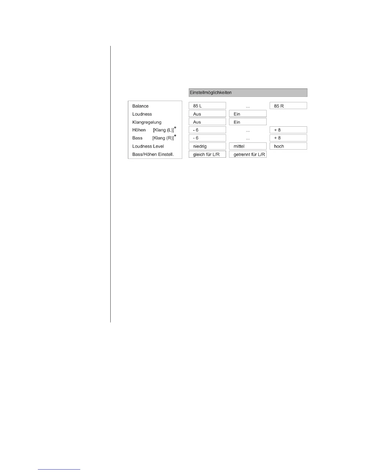 * Dieses Untermenü erscheint, wenn im Menüpunkt „Bass / Höhen Einstellungen“ die