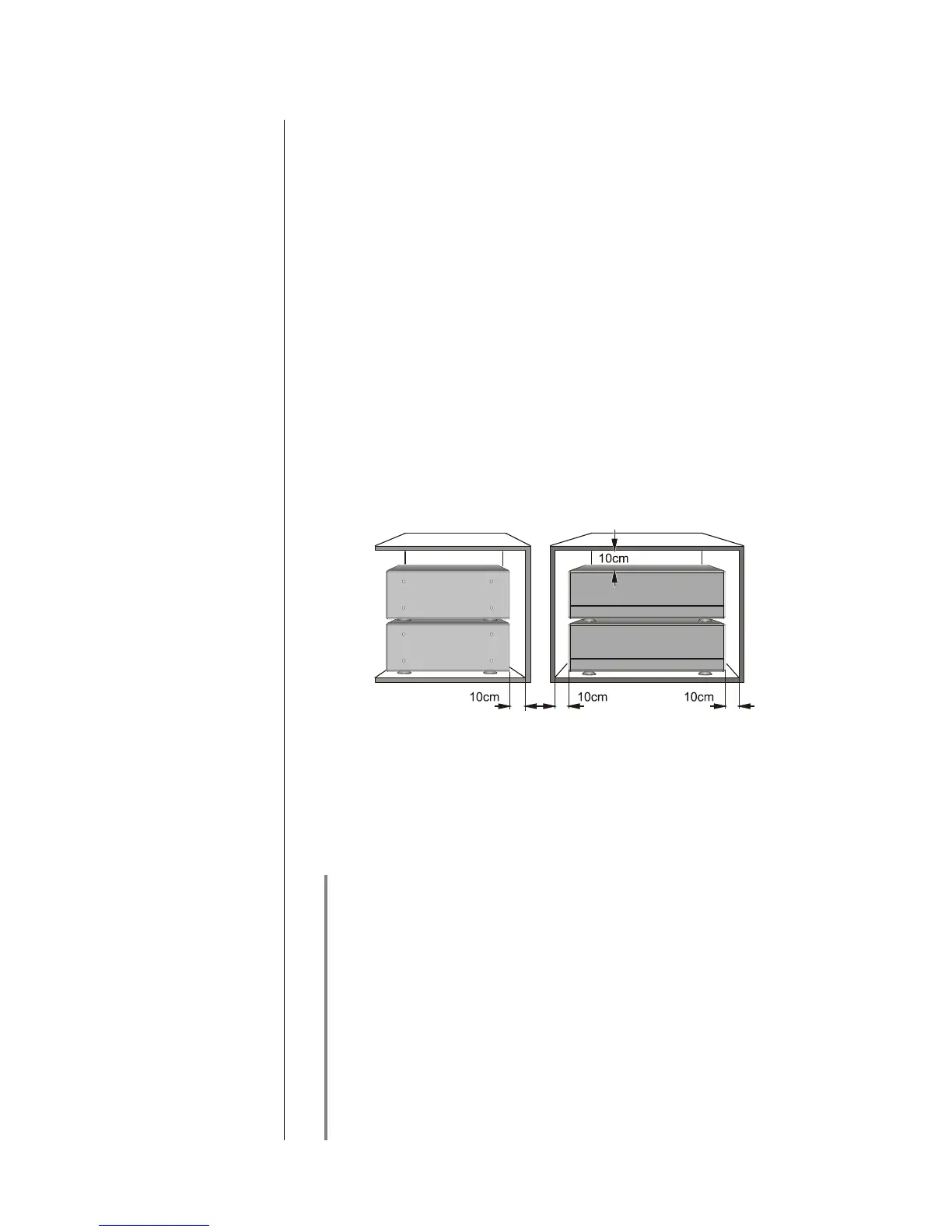 When installing the unit on a shelf or in a cupboard it is essential to provide an