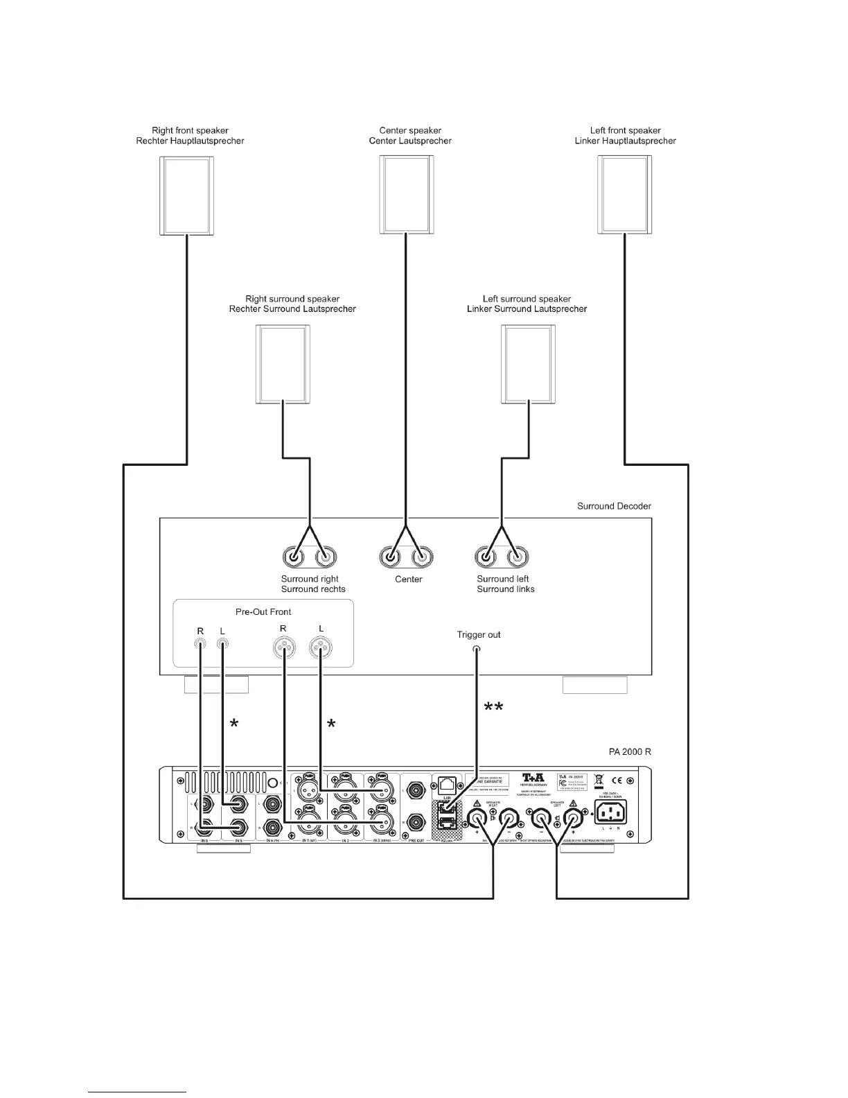* Anstelle der symmetrischen XLR-Verbindung kann alternativ die unsymmetrische RCA-Verbindung (Cinch)