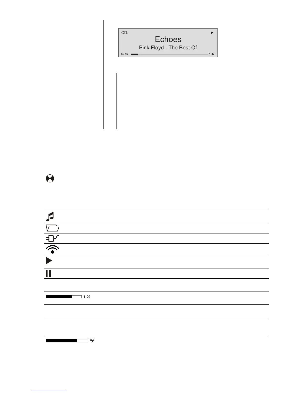 Indicates that the R 1000 E is reproducing a station or playing back a music