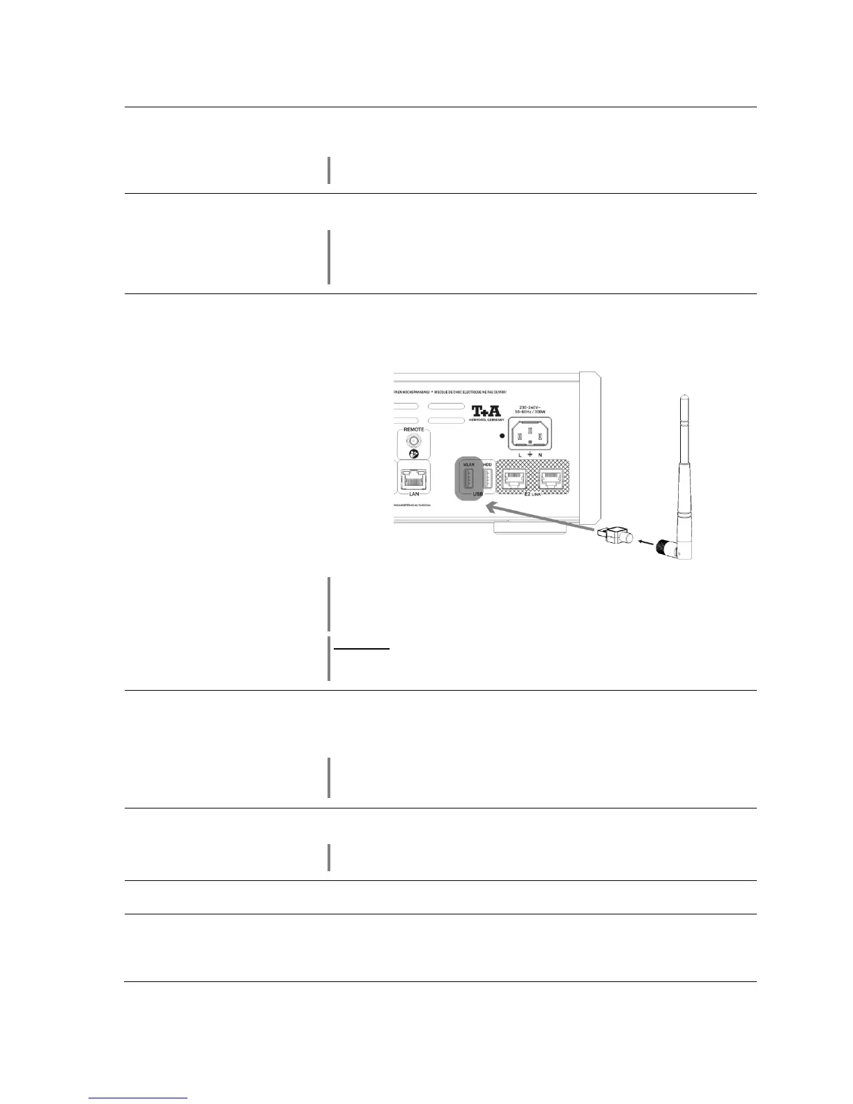 Socket for the WLAN stick supplied in the set. If you wish to connect the