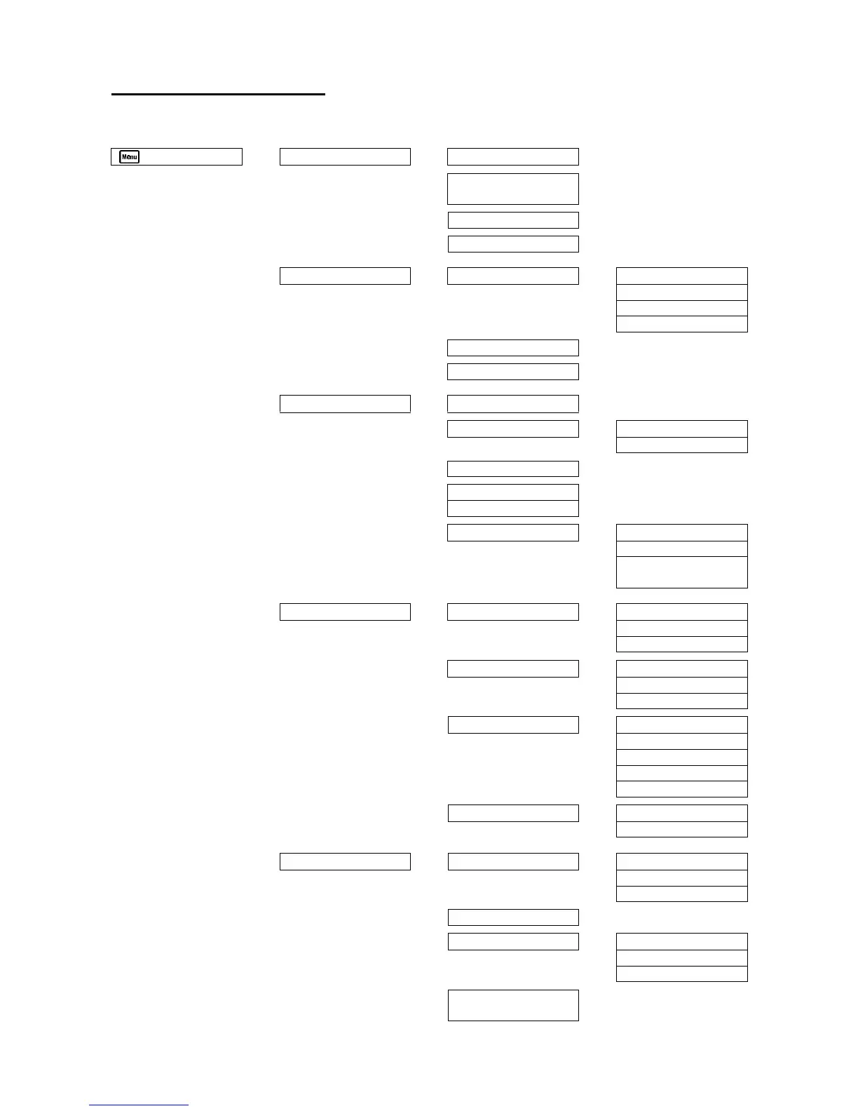 A detailed breakdown of the menu system of the 90-FL is shown below. This diagram provides a