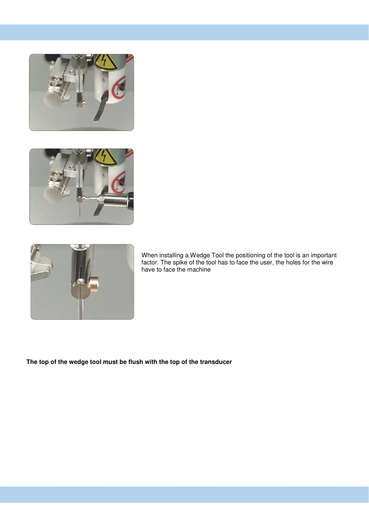 The top of the wedge tool must be flush with the top of the transducer.