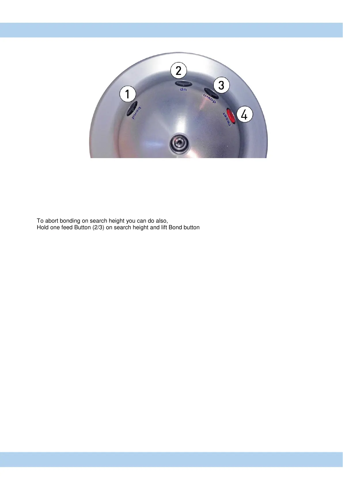 Hold one feed Button (2/3) on search height and lift Bond button (1).