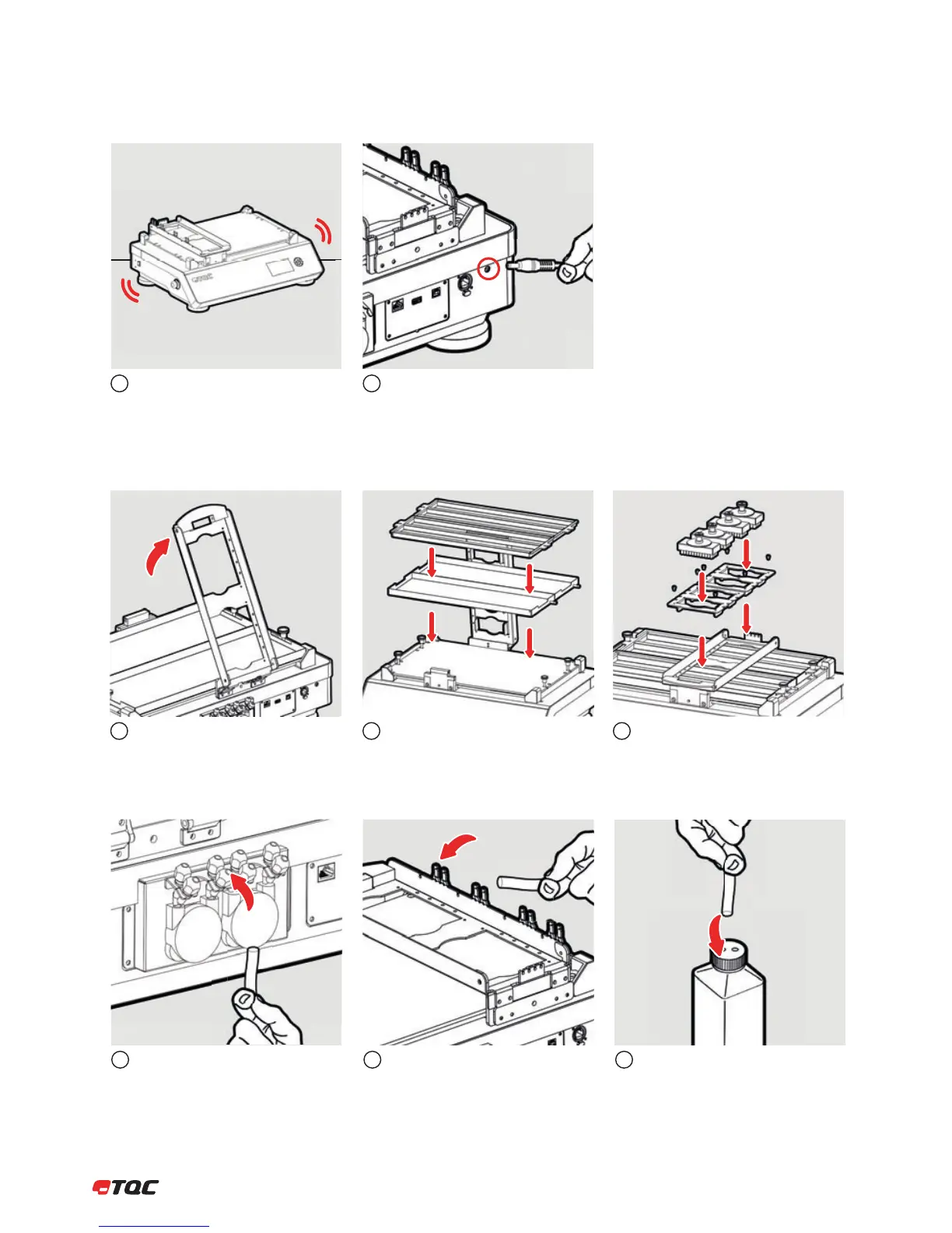 Connect the tubes to the fluid pumps. The
