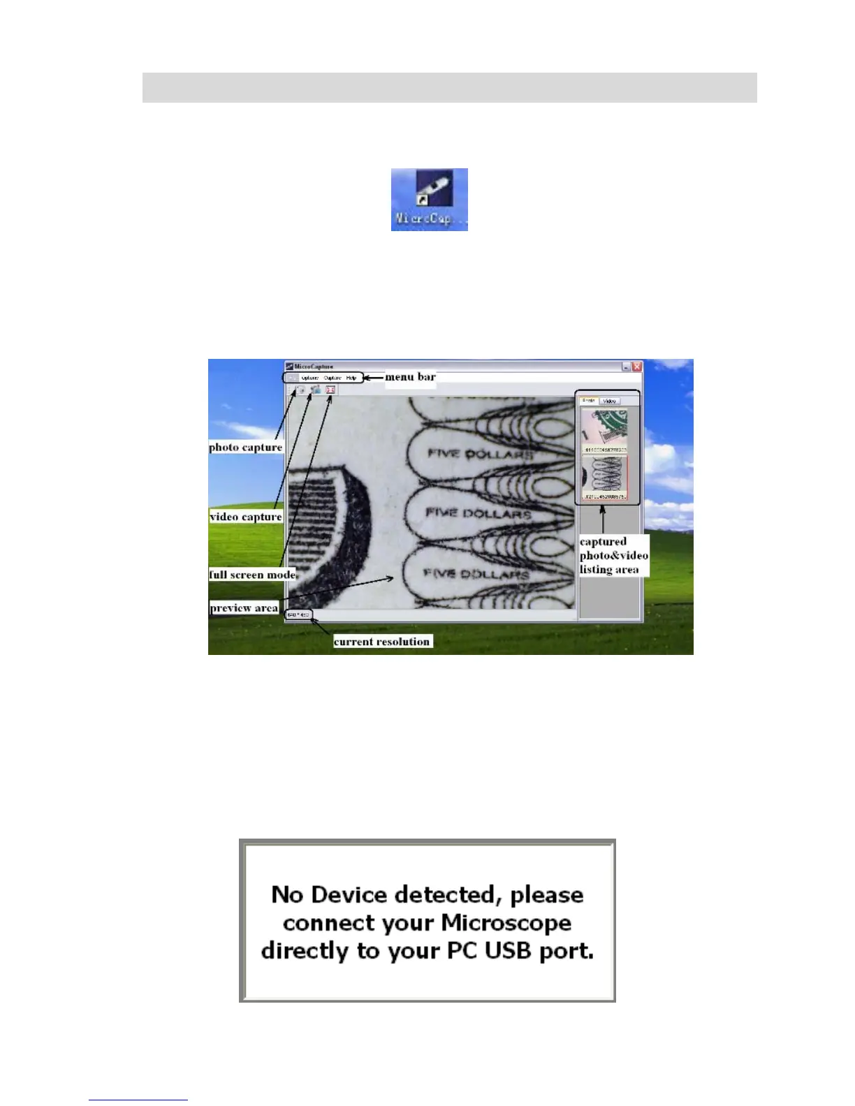 Connect your Microscope to your PC USB port, start the