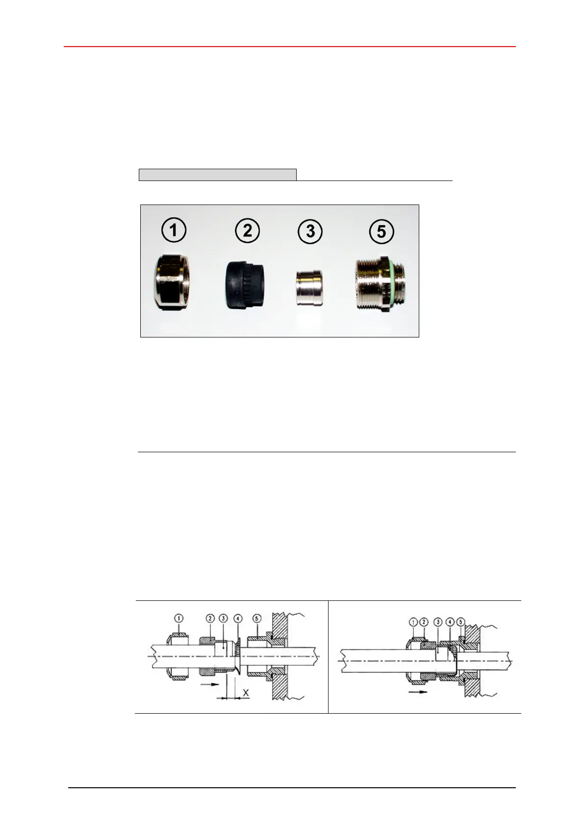 6. Push seal / contact bush (2) + (3) flush into the screw socket (5).