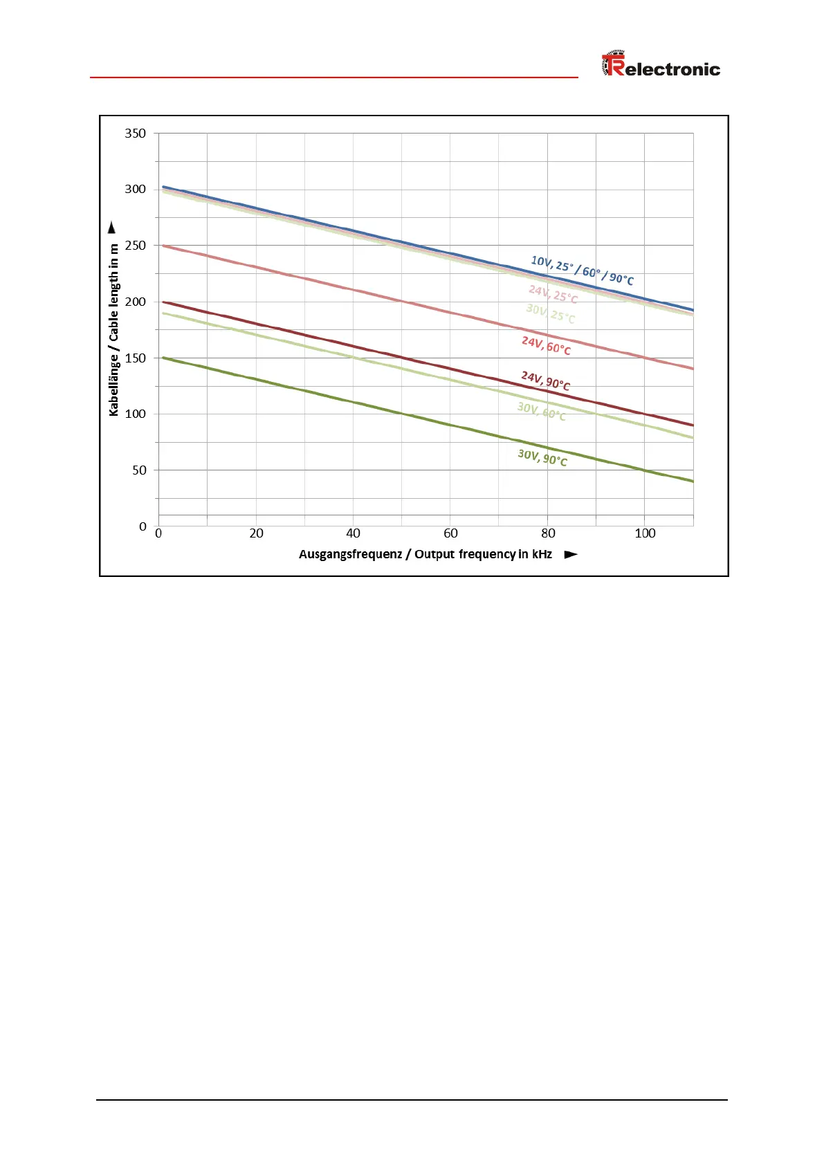 Figure 4: Cable lengths / cutoff frequencies, HTL version