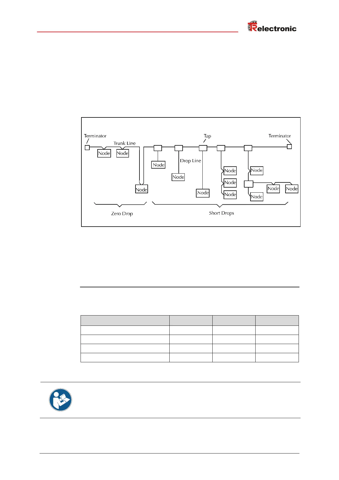 gewählten Kabeltyp und der Baudrate. Die Installation erfolgt in einer Bustopologie -
