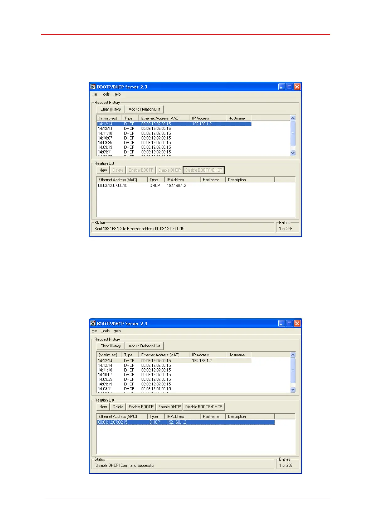– Die erfolgreiche Ausführung wird mit der Statusmeldung (Disable DHCP)