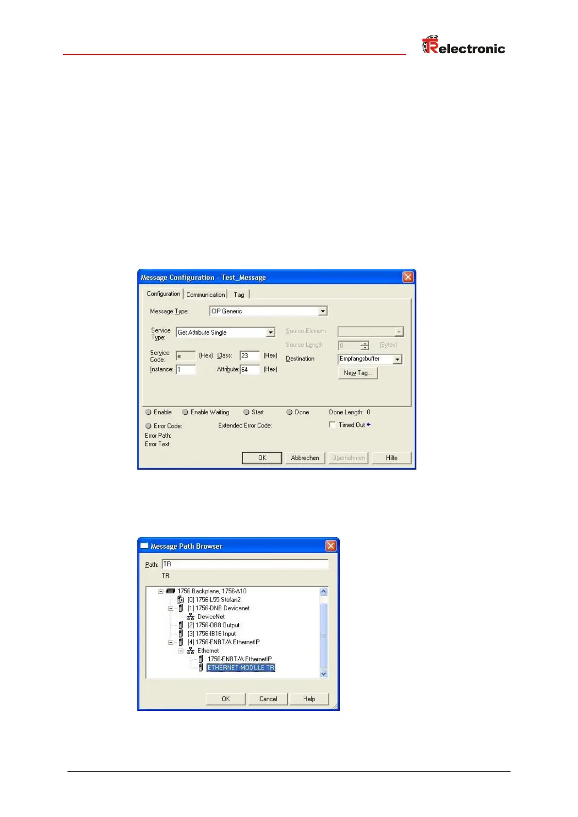 6. In der Message Configuration Dialog Box im Reiter Communication die