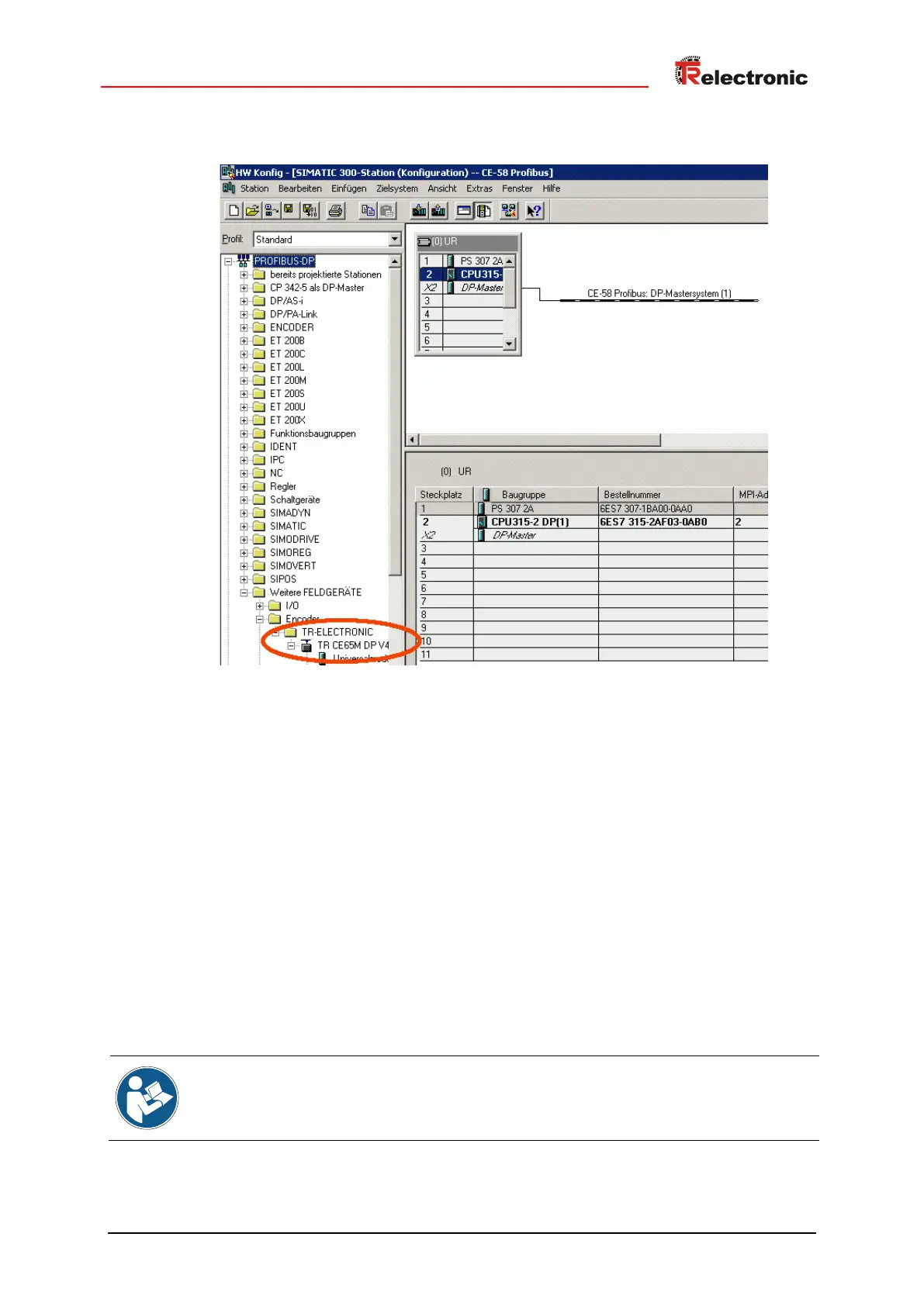 Der Eintrag der GSD-Datei TR09AAAB.GS_ lautet: „TR CE58_65M DP V1“