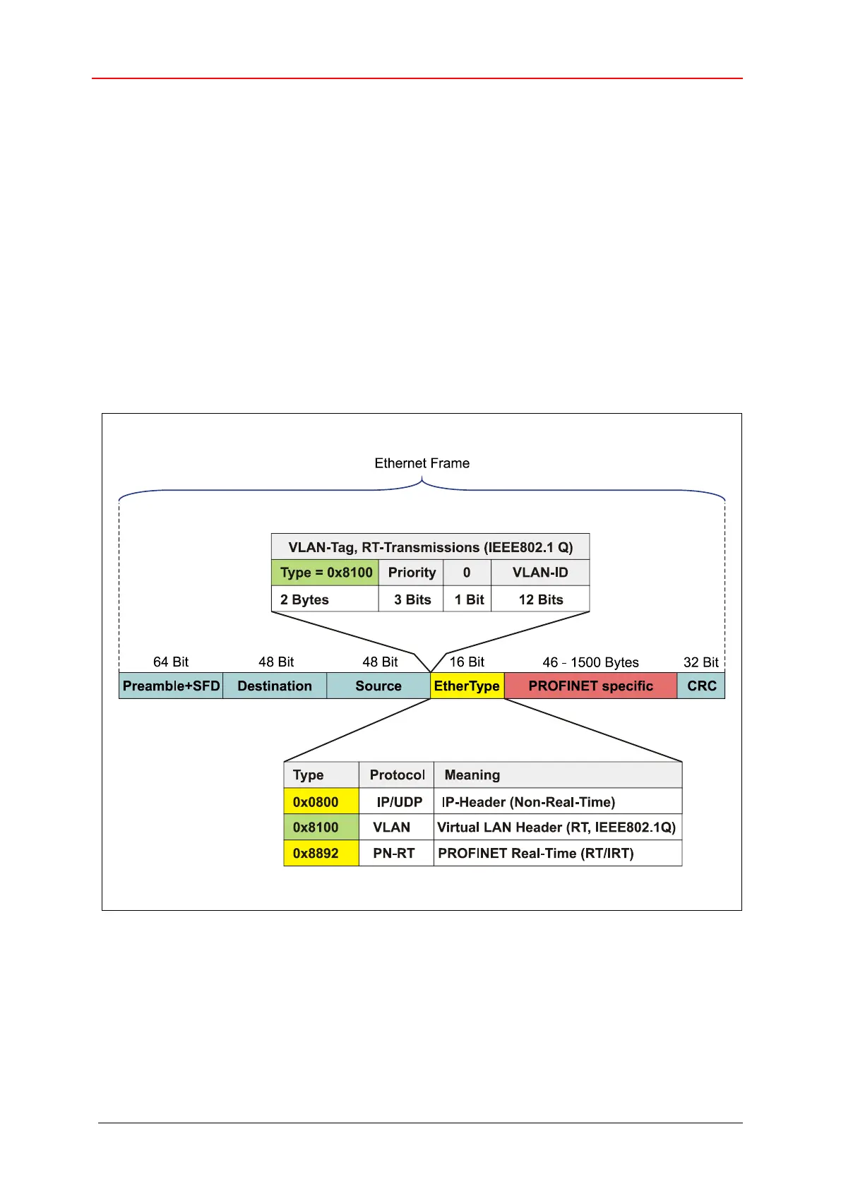On the basis of the EtherType the PROFINET specific data are interpreted different.