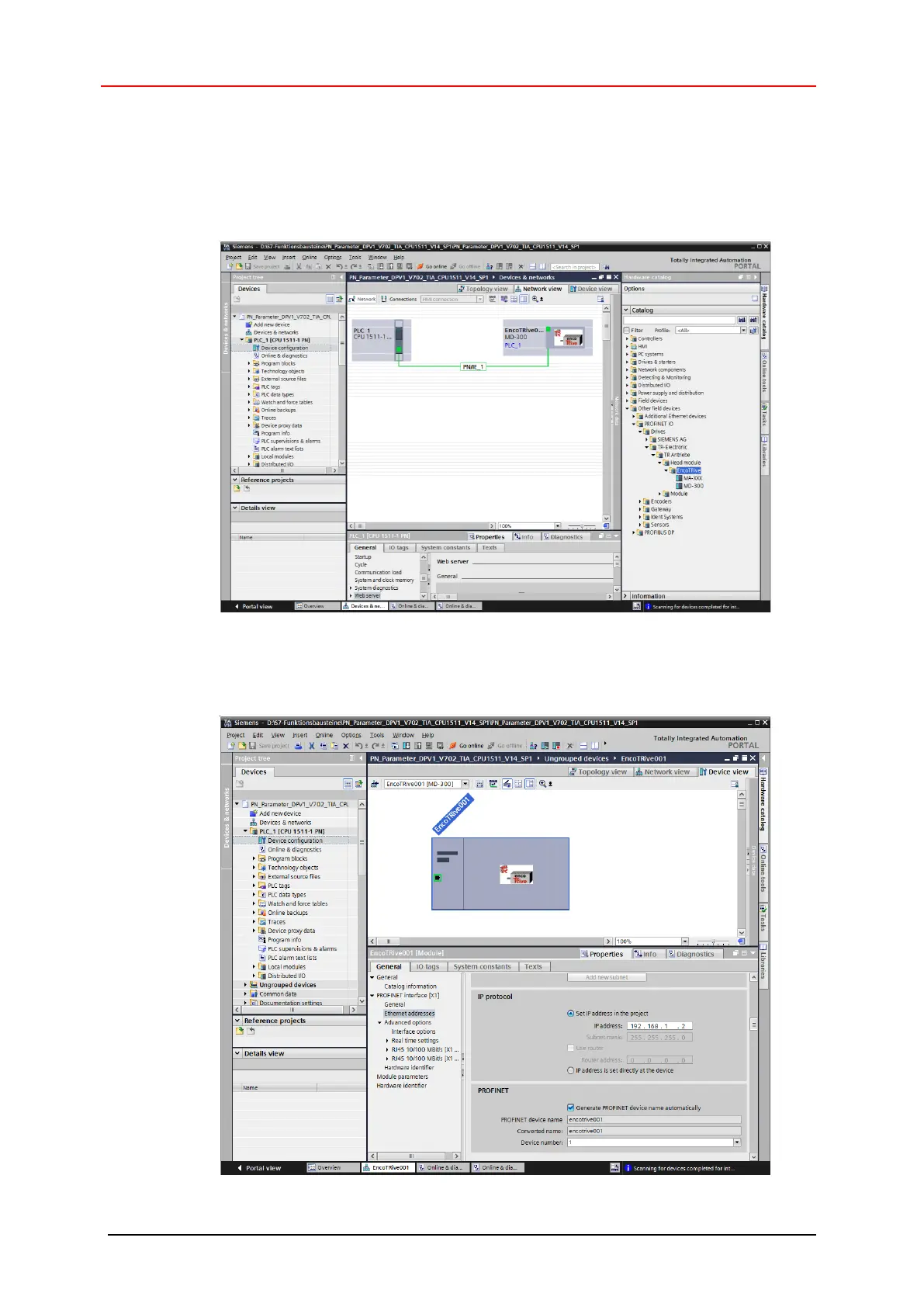 the hardware catalog and attached to the PROFINET network.