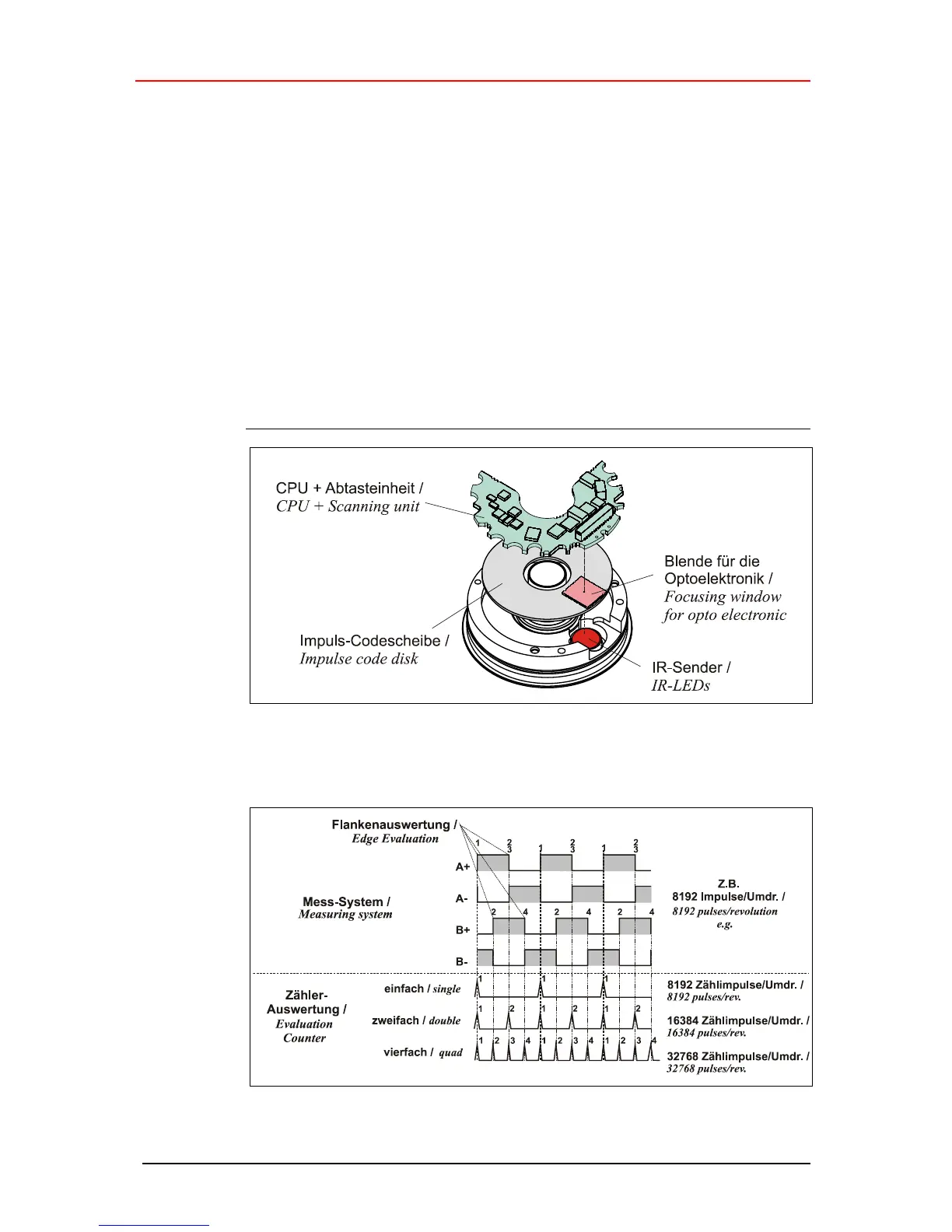 Angular increments are recorded via a pulse disk with a fixed number of cycles per