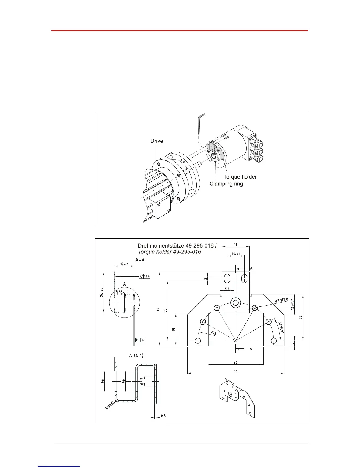 Mount measuring system with the torque holder by means of two M3 screws onto the