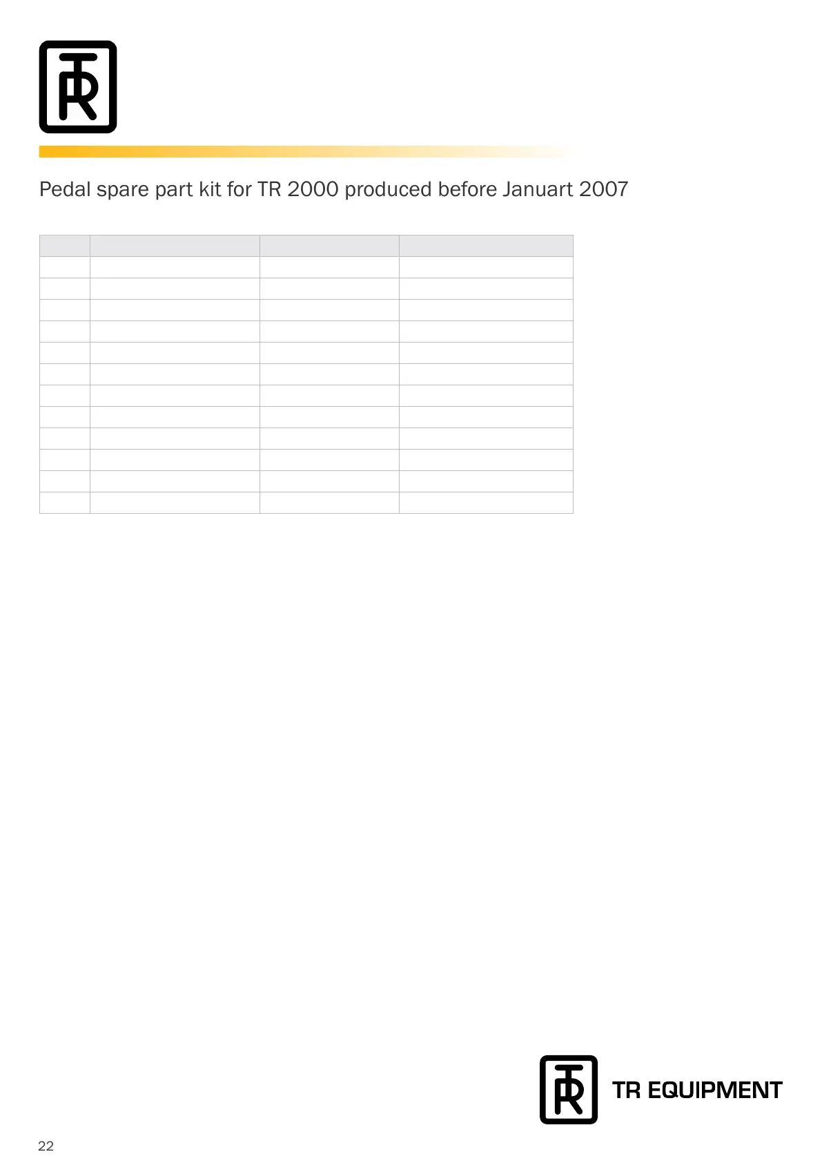 Pedal spare part kit for TR 2000 produced before Januart 2007
