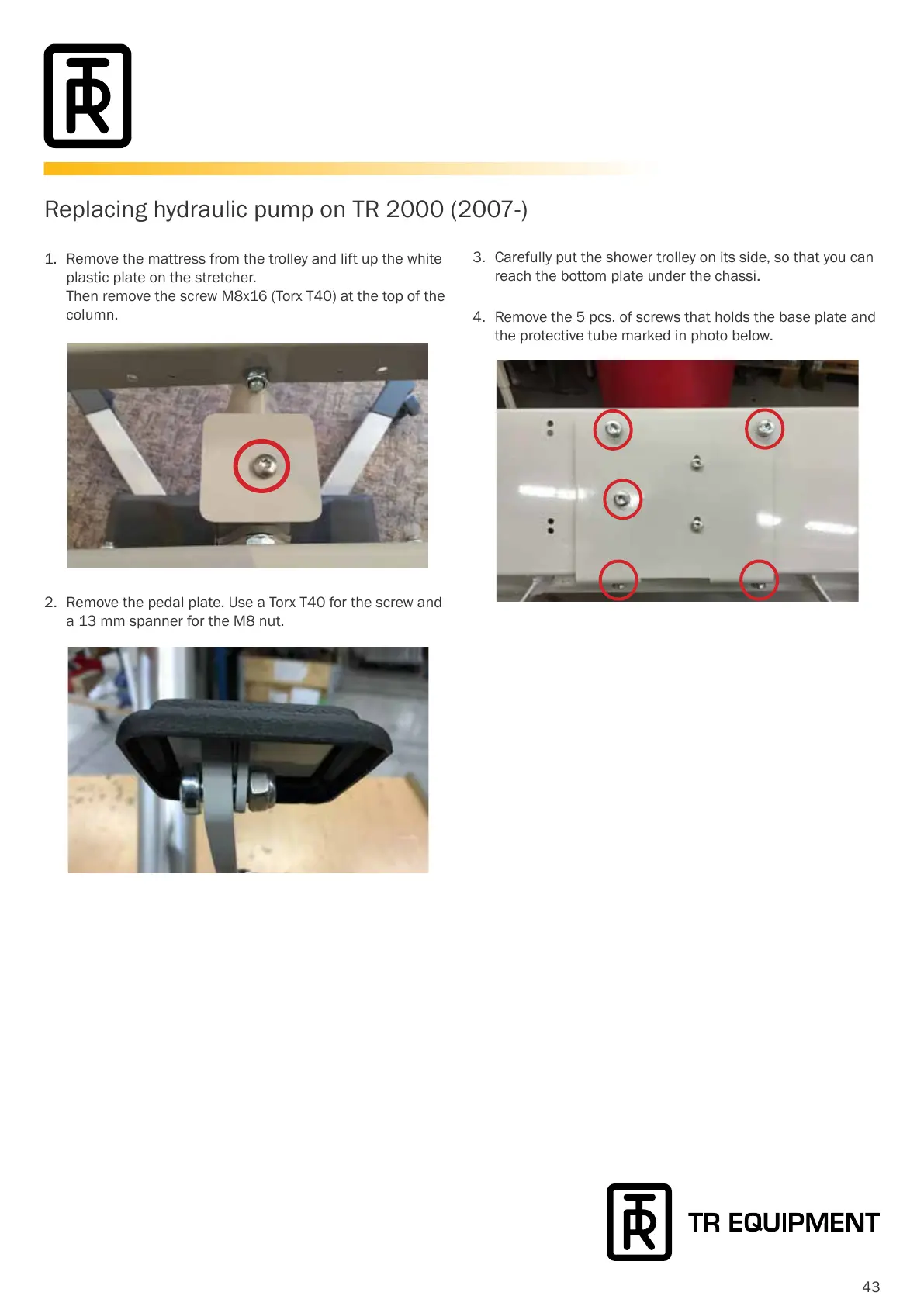 2. Remove the pedal plate. Use a Torx T40 for the screw and