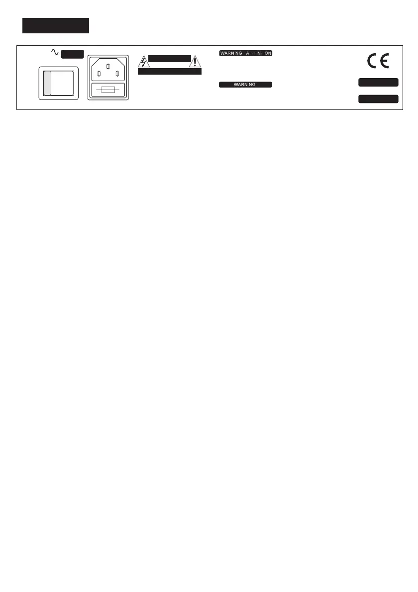 clearly marked on the rear panel adjacent to the mains inlet socket.