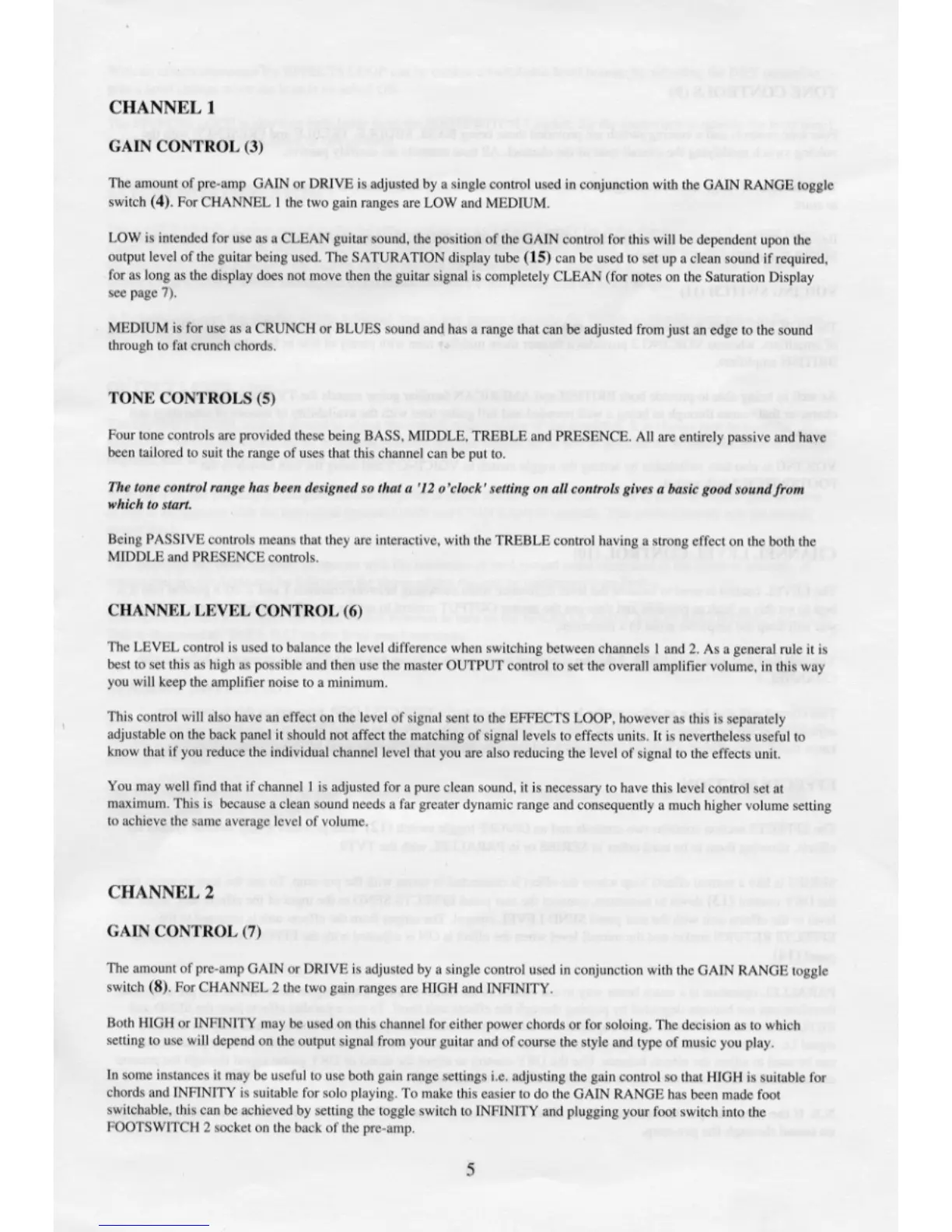 TRACE ELLIOT TVT9 - Gain Control; Tone Controls; Channel Level Control