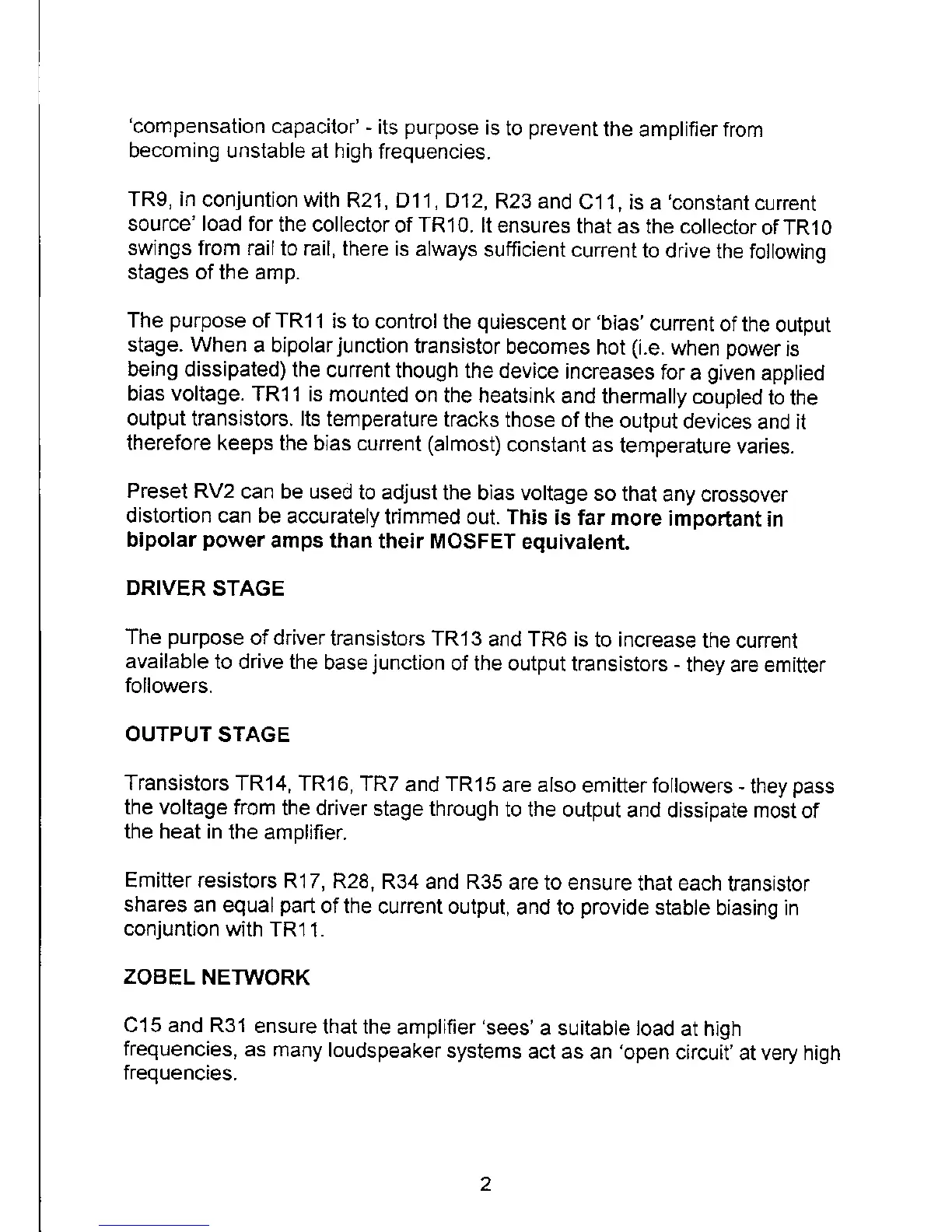 TRACE ELLIOT V-TYPE - Bipolar Bear Driver Stage Function; Bipolar Bear Output Stage Design; Bipolar Bear Zobel Network Purpose