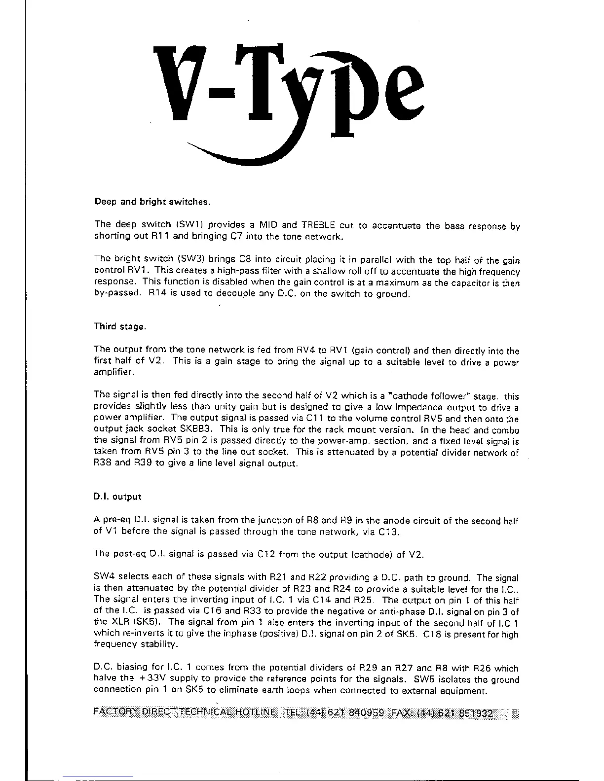 TRACE ELLIOT V-TYPE - V-Type Deep & Bright Switches; V-Type Third Stage & Output Buffering; V-Type DI Output Circuit