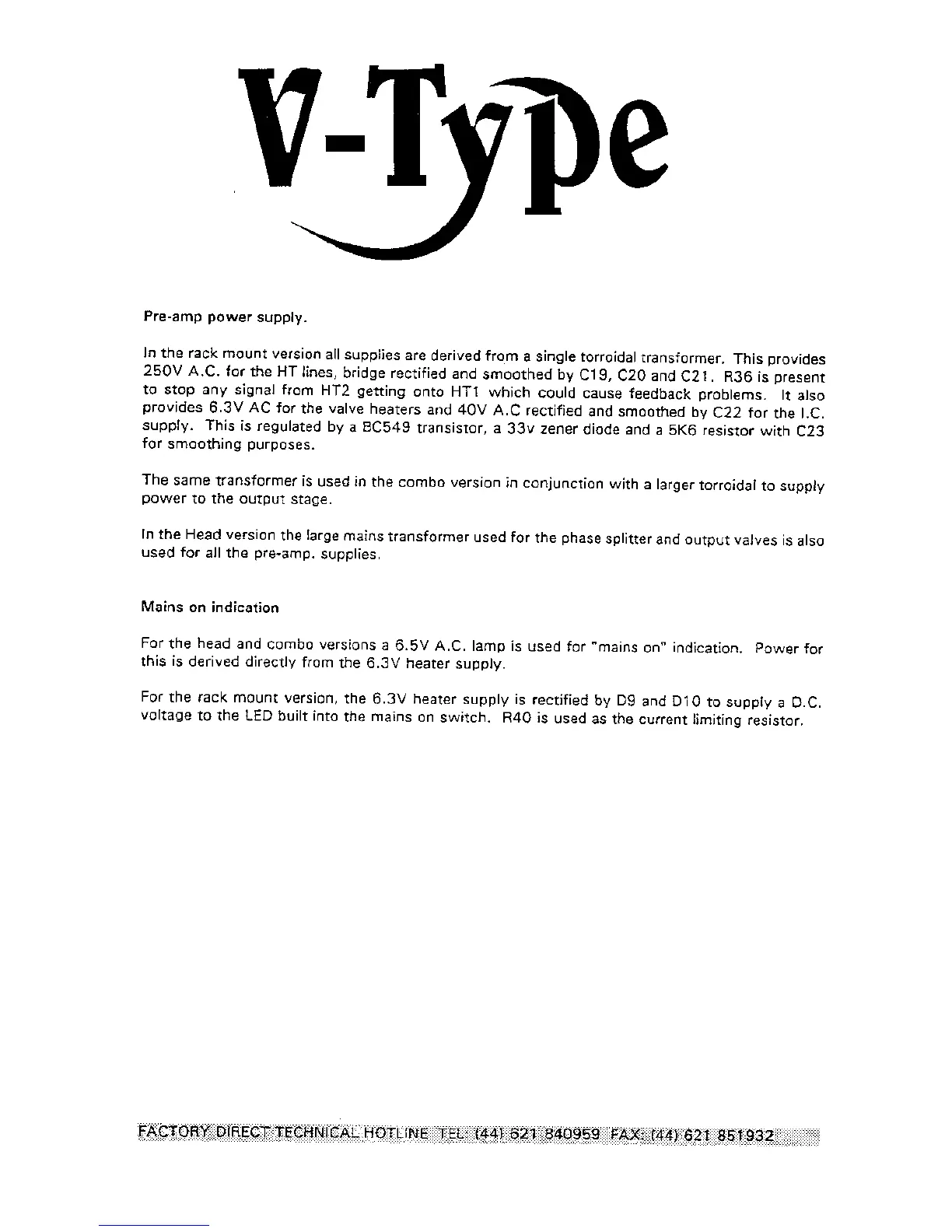TRACE ELLIOT V-TYPE - V-Type Pre-amp Power Supply; V-Type Mains On Indicator