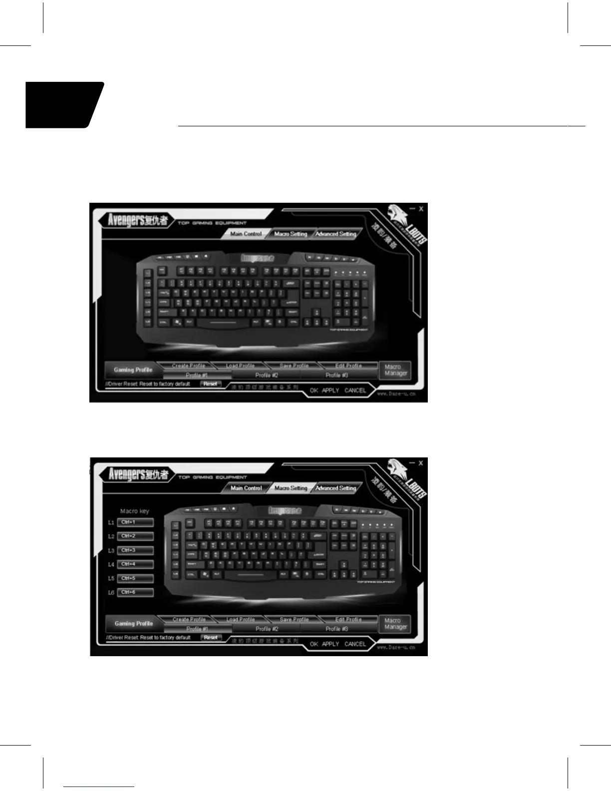 Tracer Avenger - Avenger Keyboard Software Configuration; Driver Interface for Gaming Settings; Macro Key Assignment Interface
