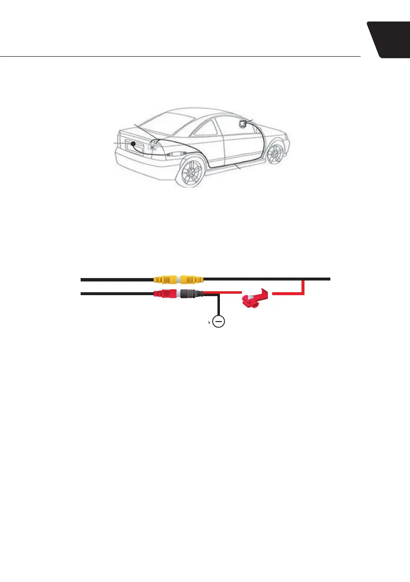 5. Подключите черный провод КАБЕЛЯ ПИТАНИЯ к массе автомобиля (например в отсеке под