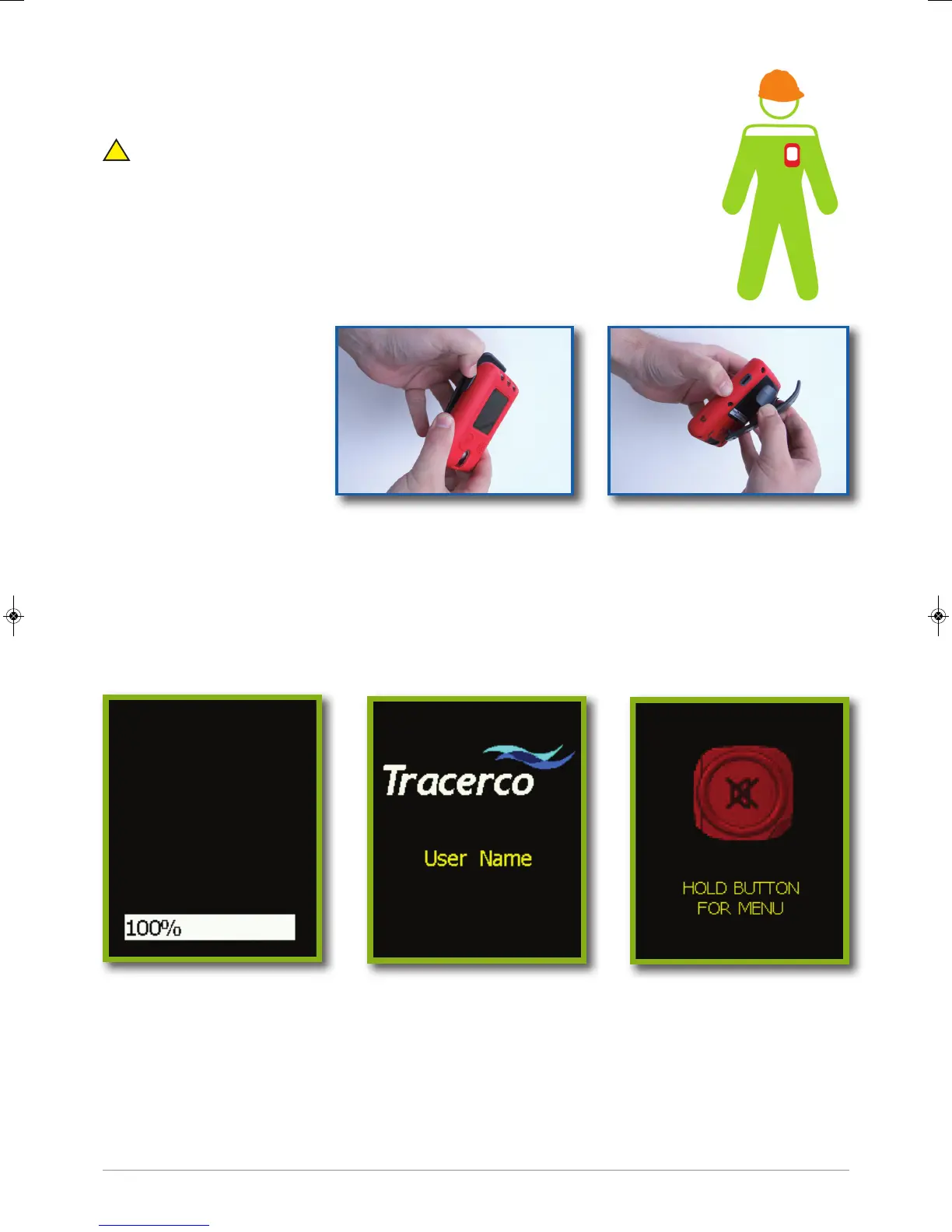 area of work clothes. The TRACERCO PED must be worn with the screen facing