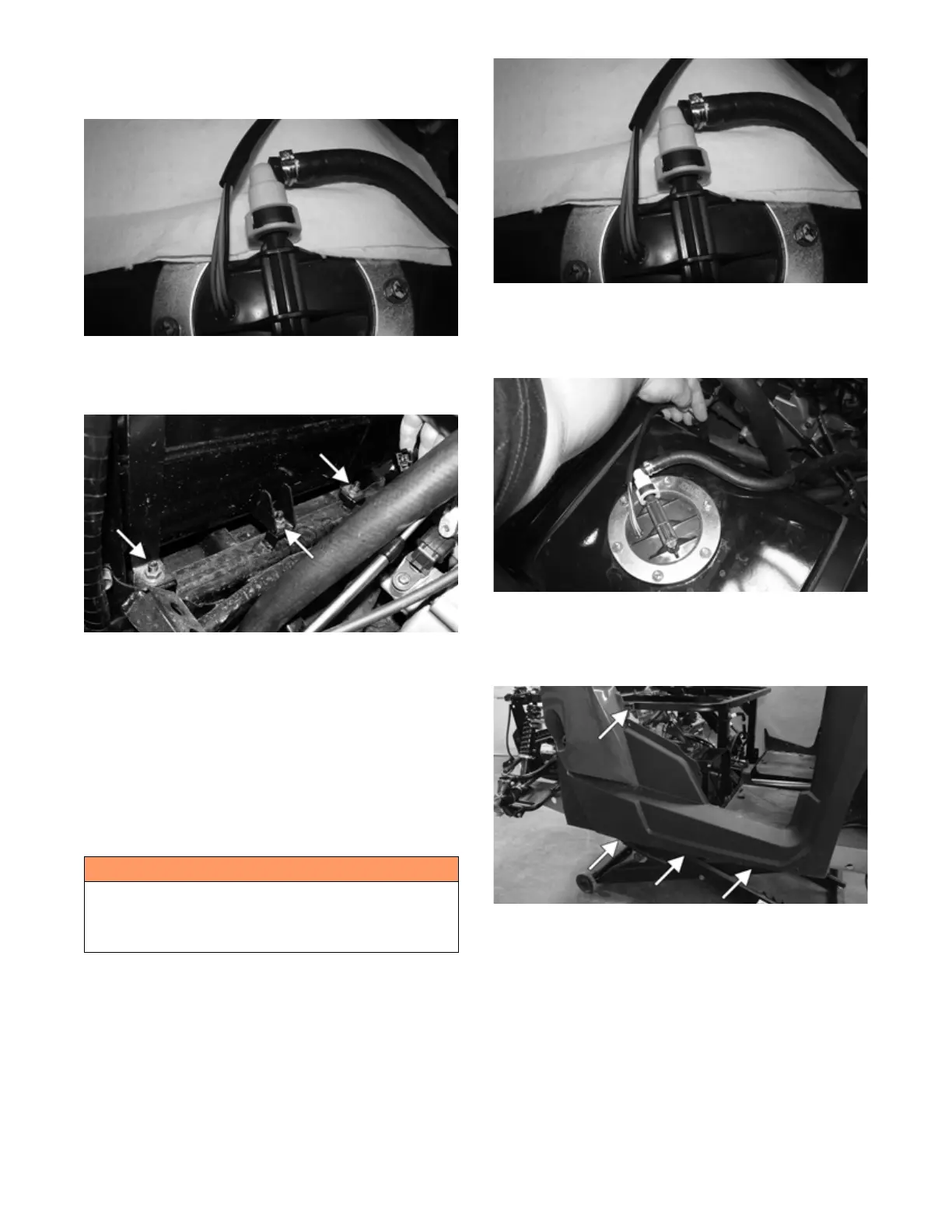 3. Inspect gas tank cap and tank for leaks, holes, and