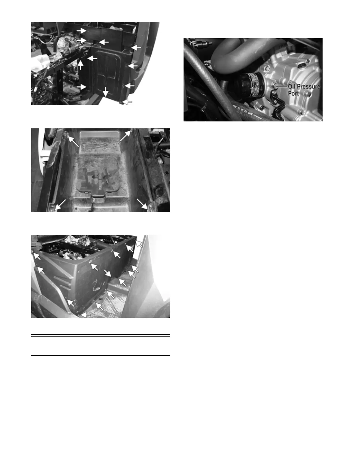 the oil pressure gauge. Wipe up oil residue with a