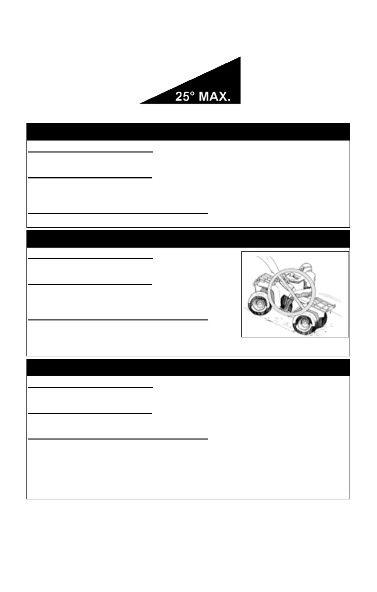 NEVER OPERATE UP OR DOWN INCLINES