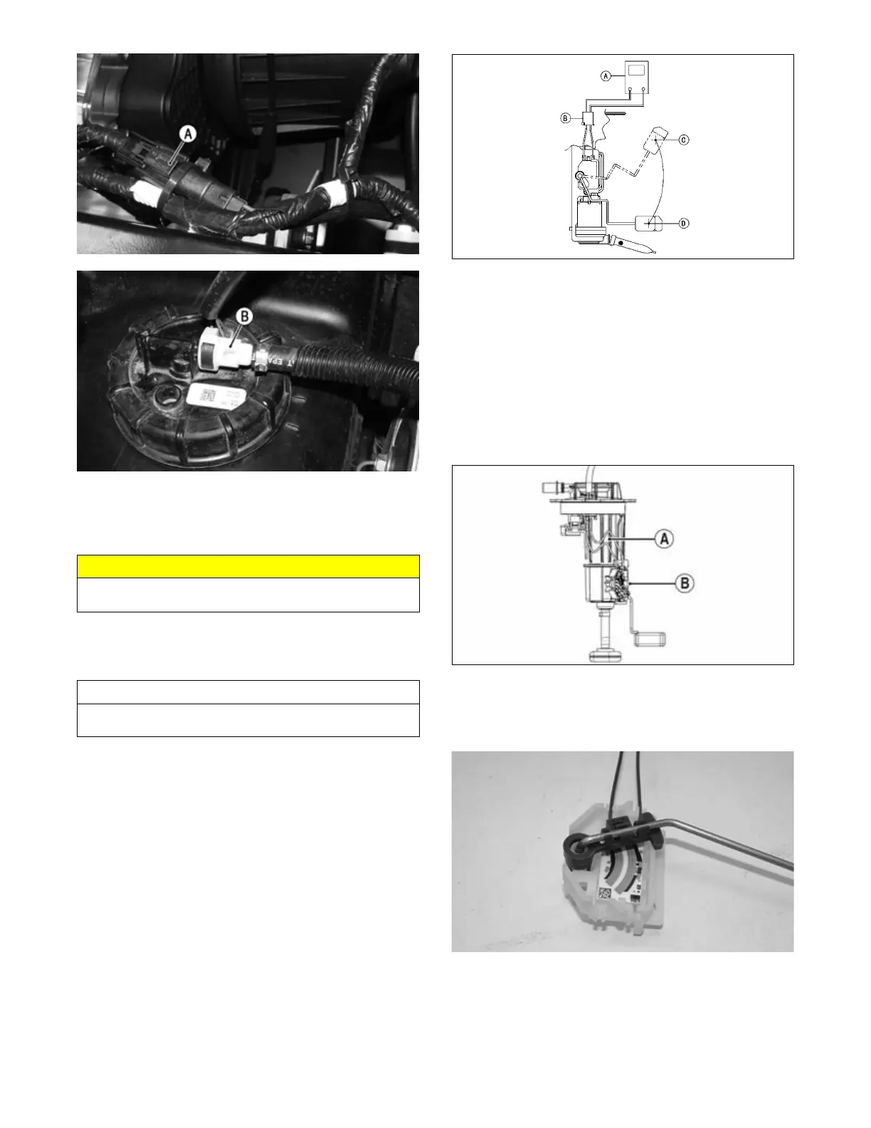 3. Test the fuel level sensor by connecting a multimeter (A)