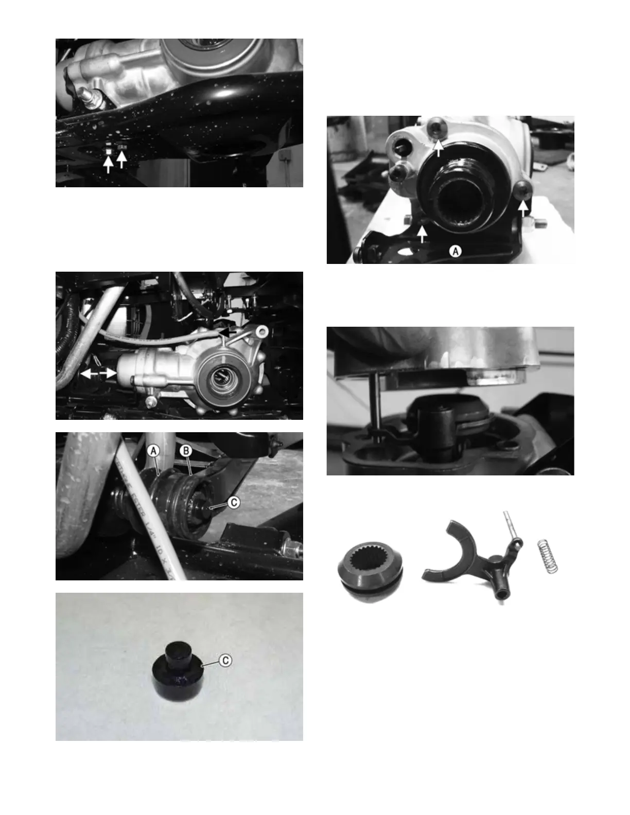 (B) and driveshaft bumper (C); then remove the front