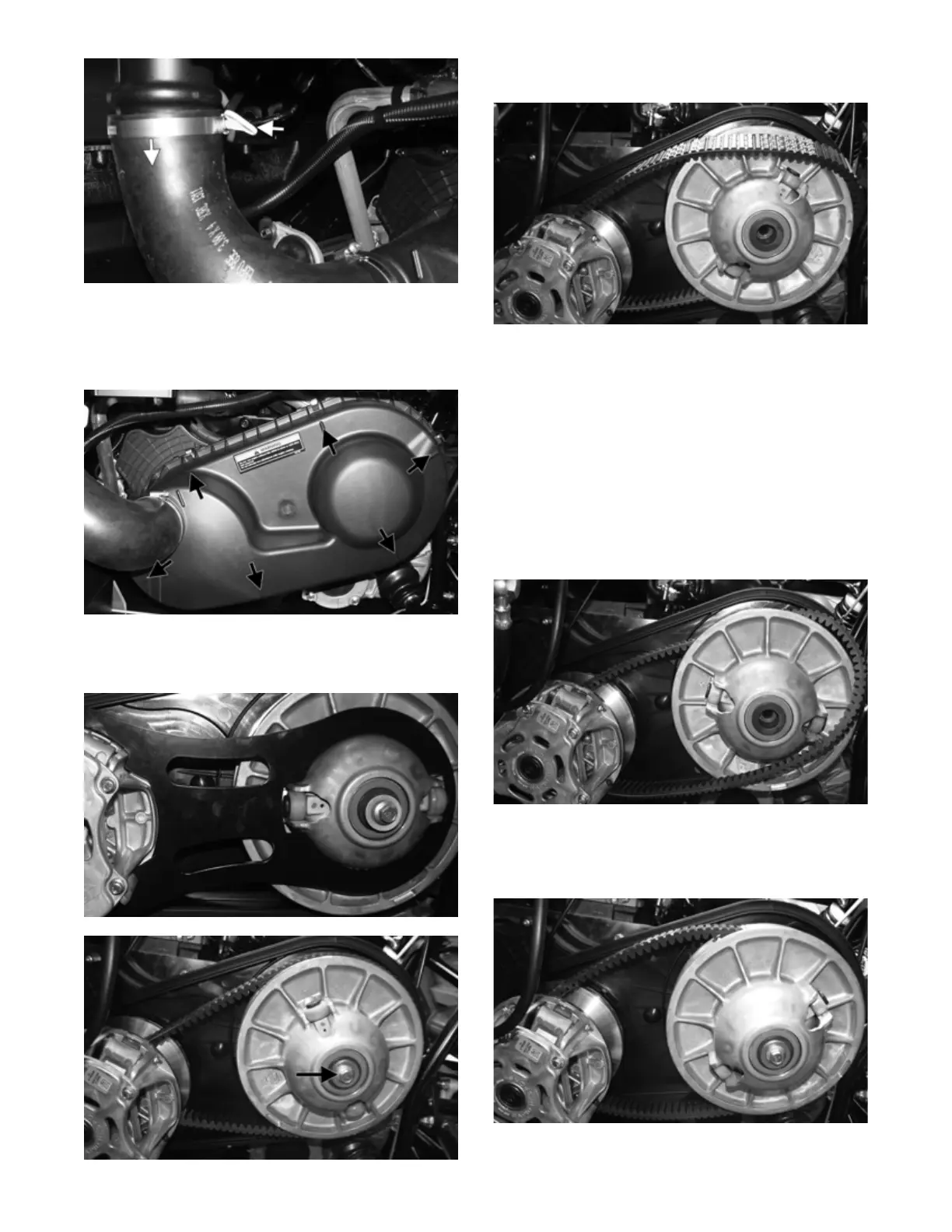 6. Remove the belt by pulling it over the driven clutch