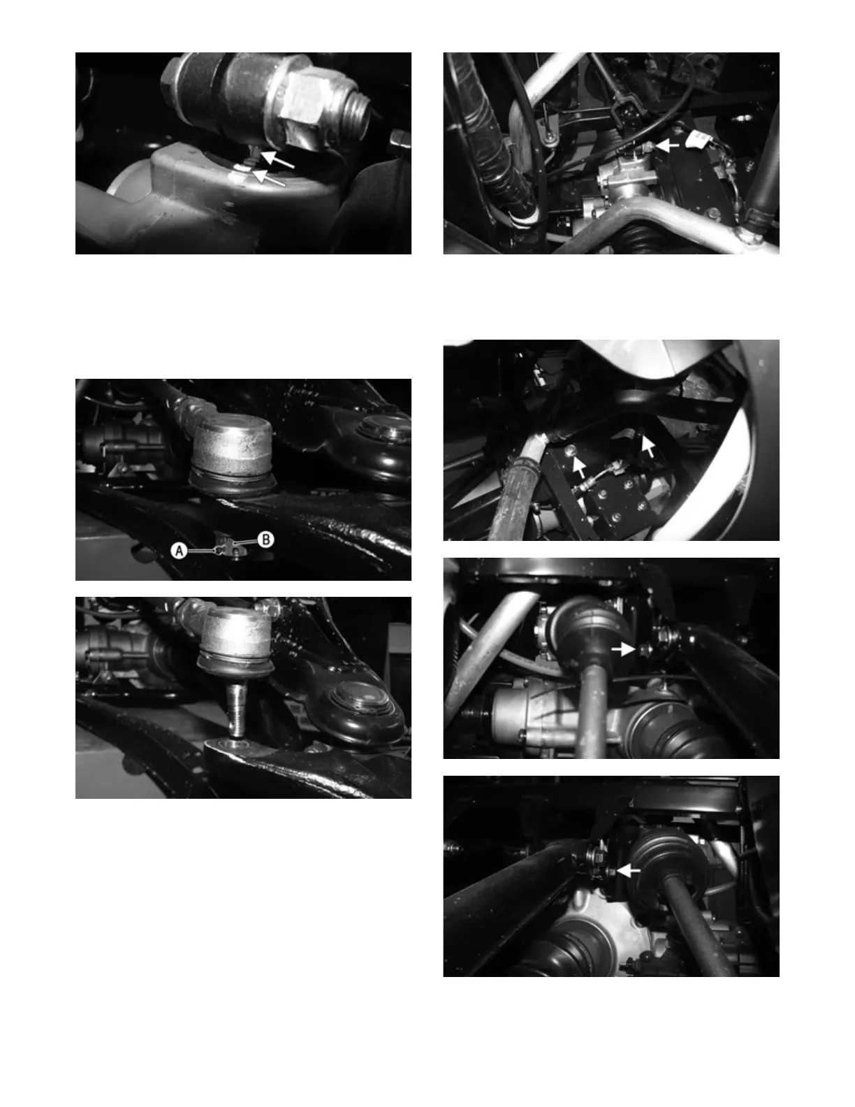 2. Remove the cotter pins (A) and castle nuts (B) secur-