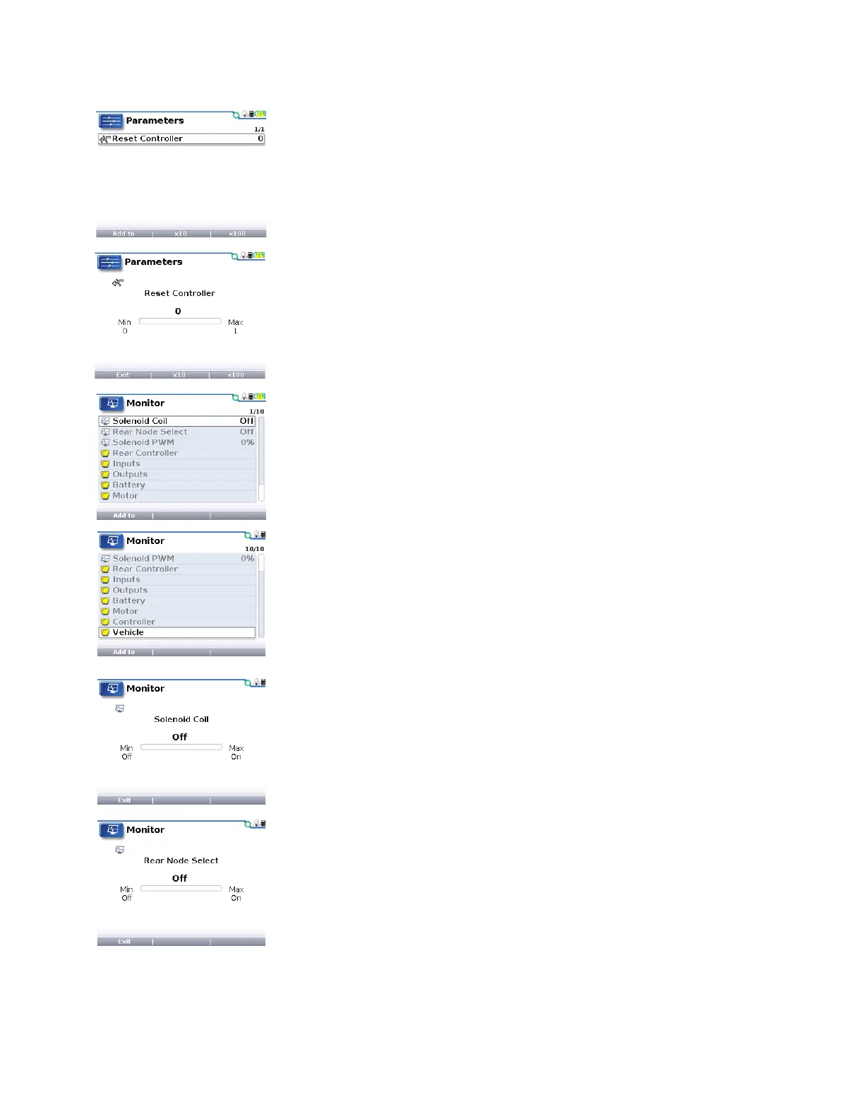 “Rear Node Select” shows the rear controller command. It indicates on or off.
