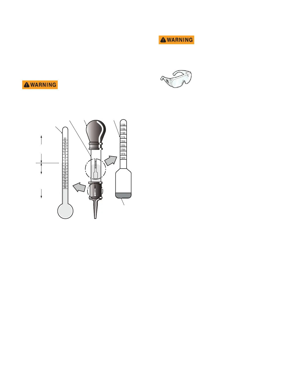 1. Draw electrolyte into the hydrometer several times to