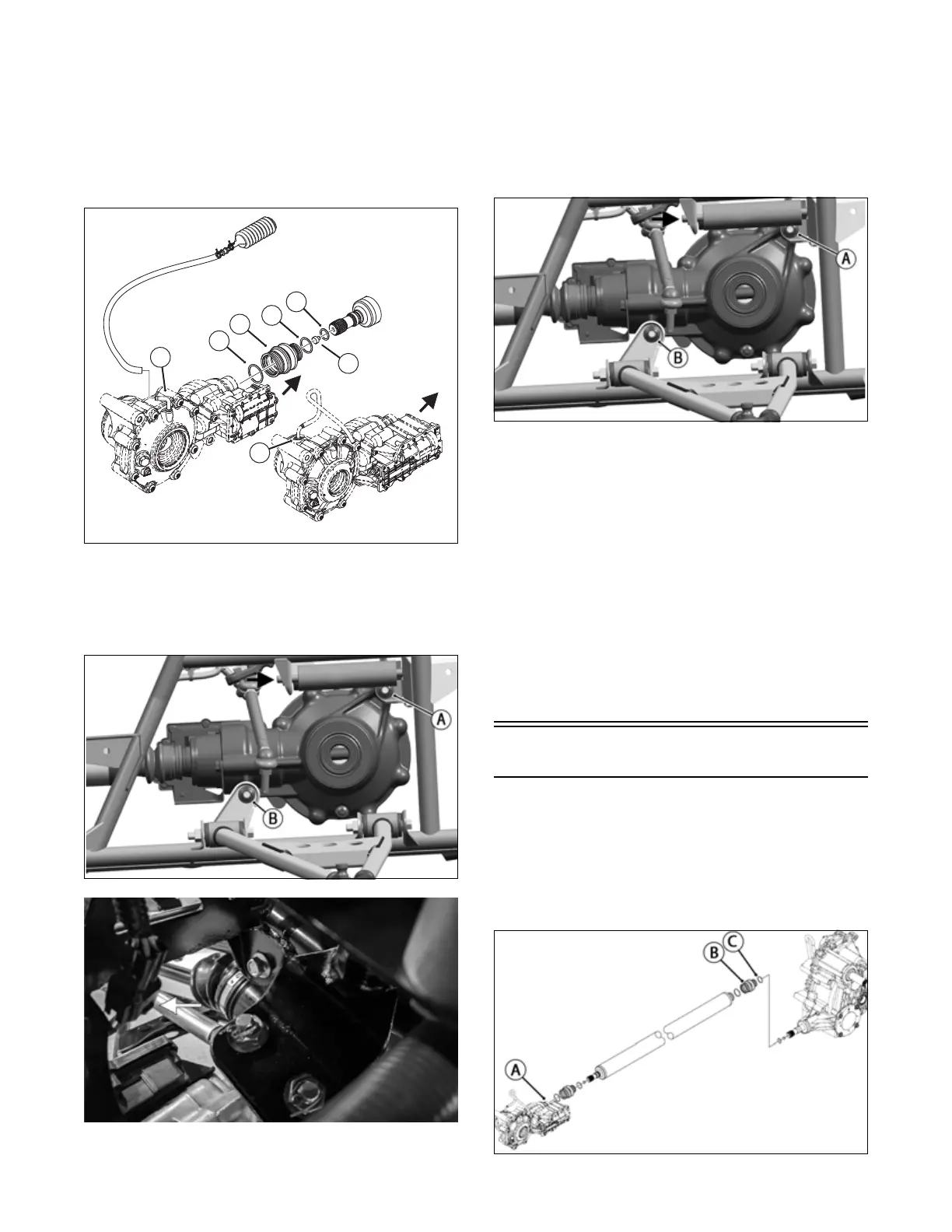 1. With the rubber boot (A), O-ring (B), and driveshaft