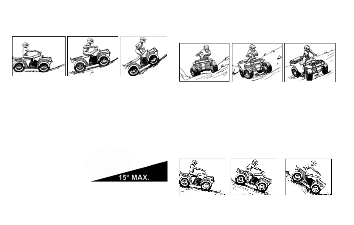 doesn’t work, stop and get off. Dismount the ATV on the uphill side.
