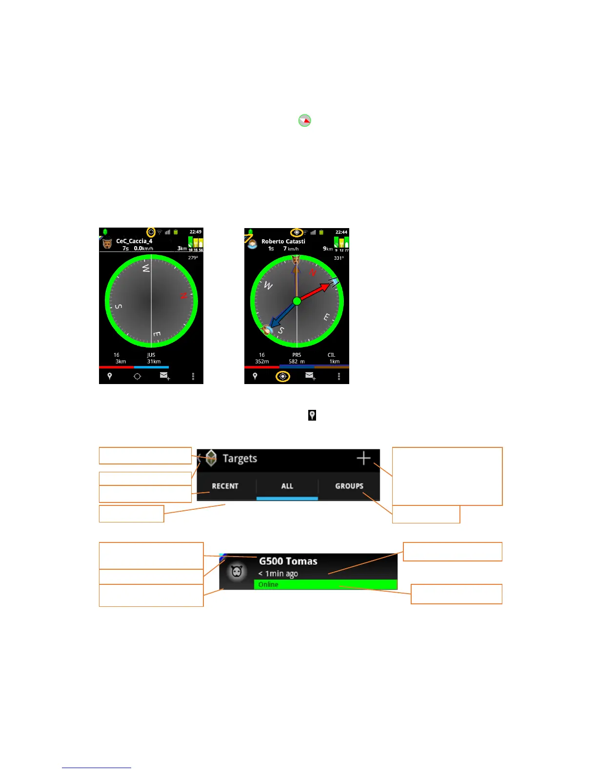3. After the correct position is found, the compass shows the current selected target –the colour of