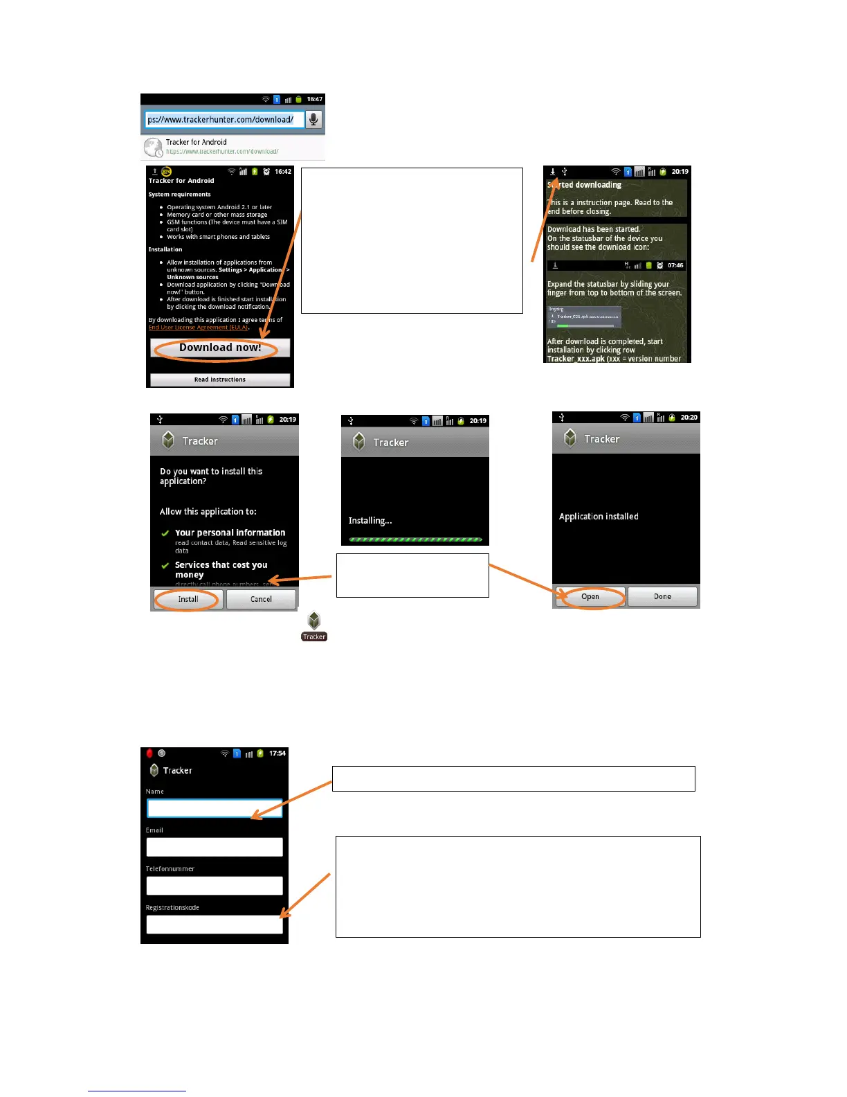 Tracker for Android™ icon was created into your mobile phone menu during the installation.