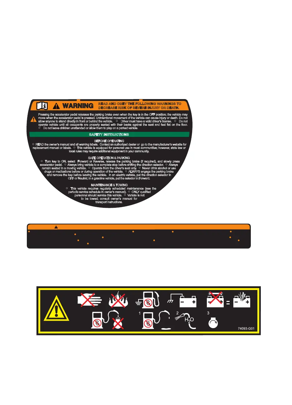 Safety and warning labels are on the vehicle for your protection. Read carefully and comply with the instructions on
